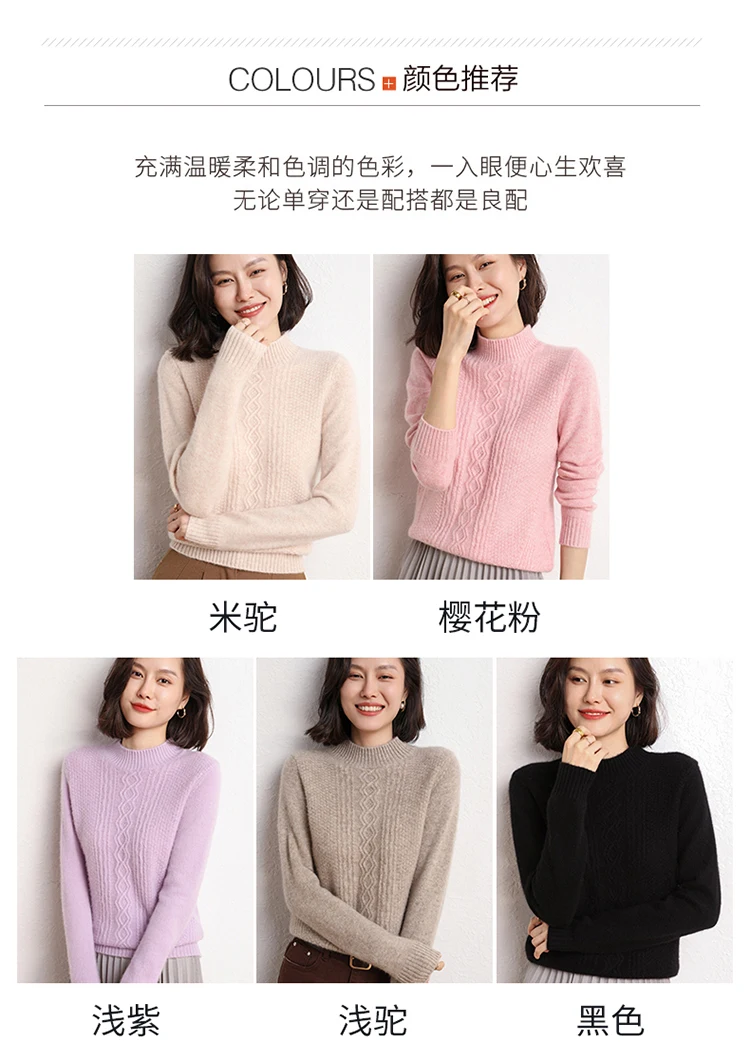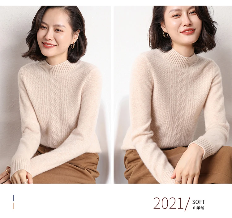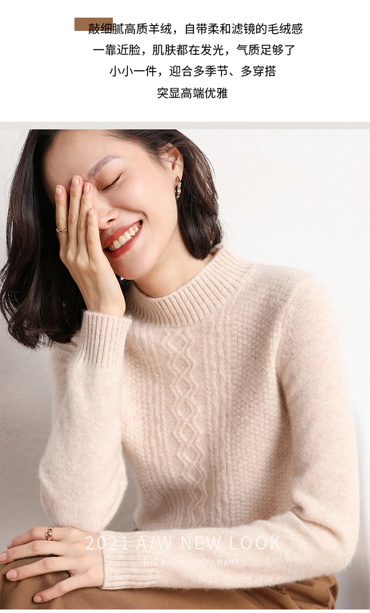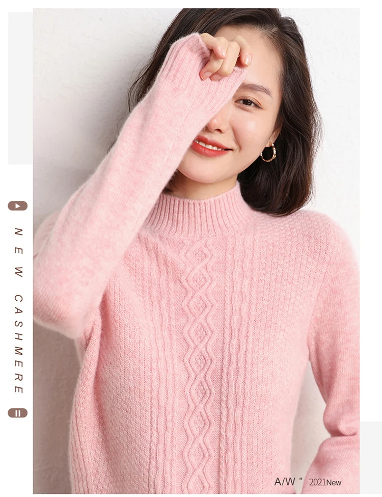 2021Hot Sale Autumn Winter 100% Pure Cashmere Sweater Turtleneck Women's High Quality Soft Female Loose Thickened Knitted Jumper