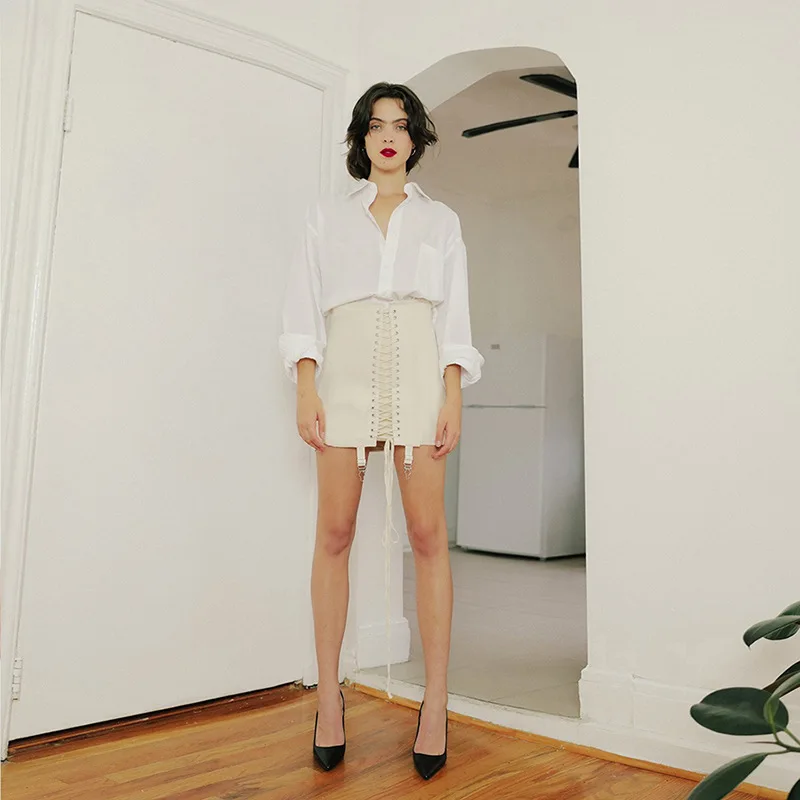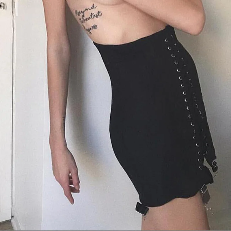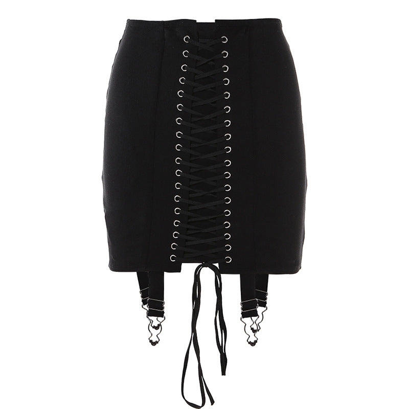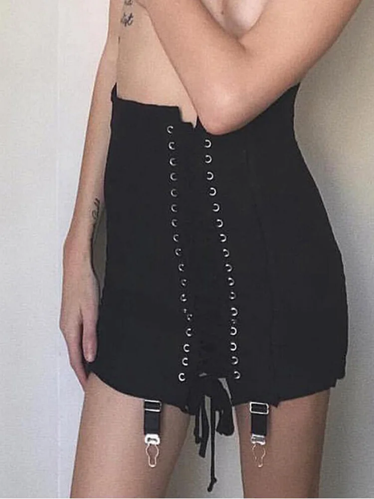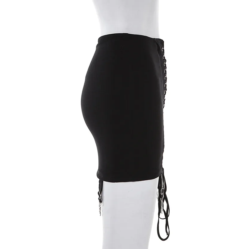 2022 Fashion Sexy Chain High Waist Bandage Mini Skirt for Women Streetwear Summer Blcak Short Skirts Slim locomotive Hot