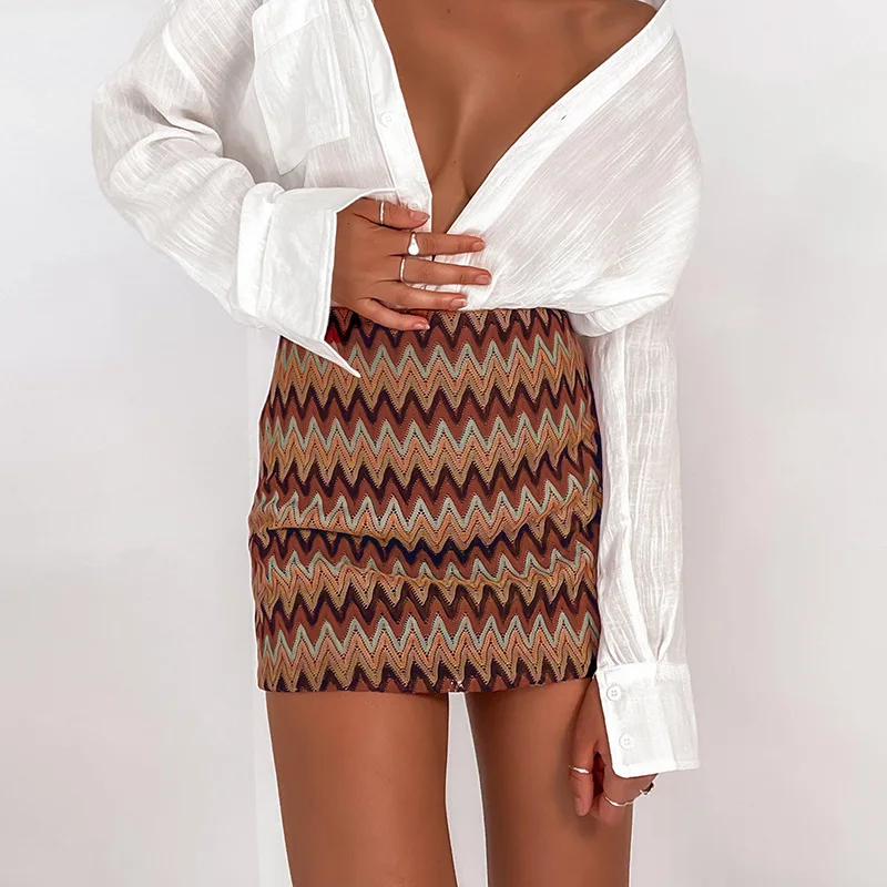 2022 Fashion Sexy Chain High Waist Retro Stripe Mini Skirt for Women Streetwear Summer Short Skirts Slim Casual locomotive Hot