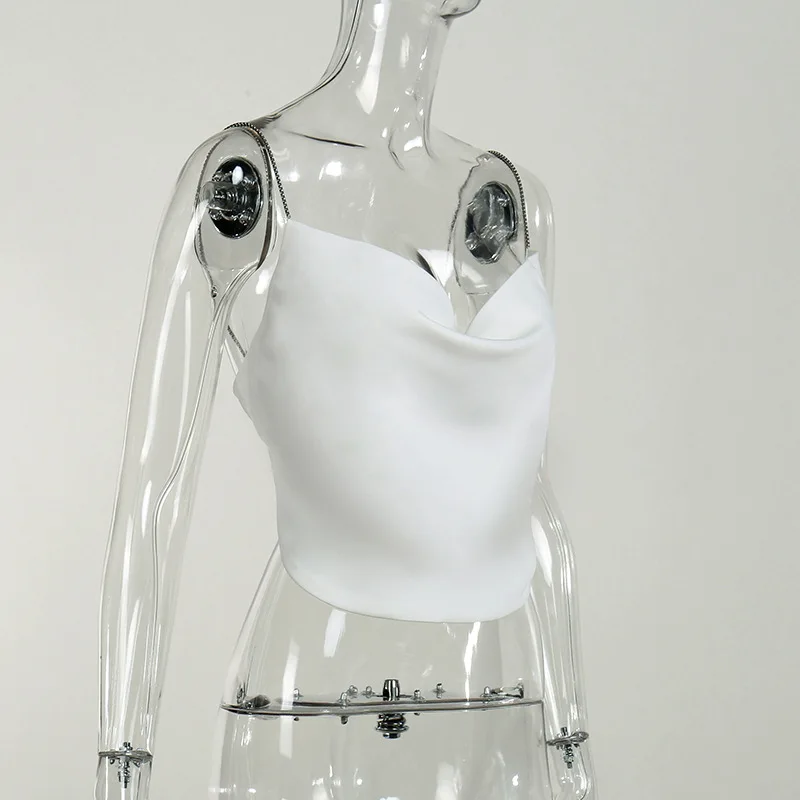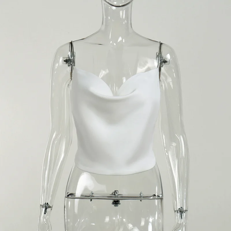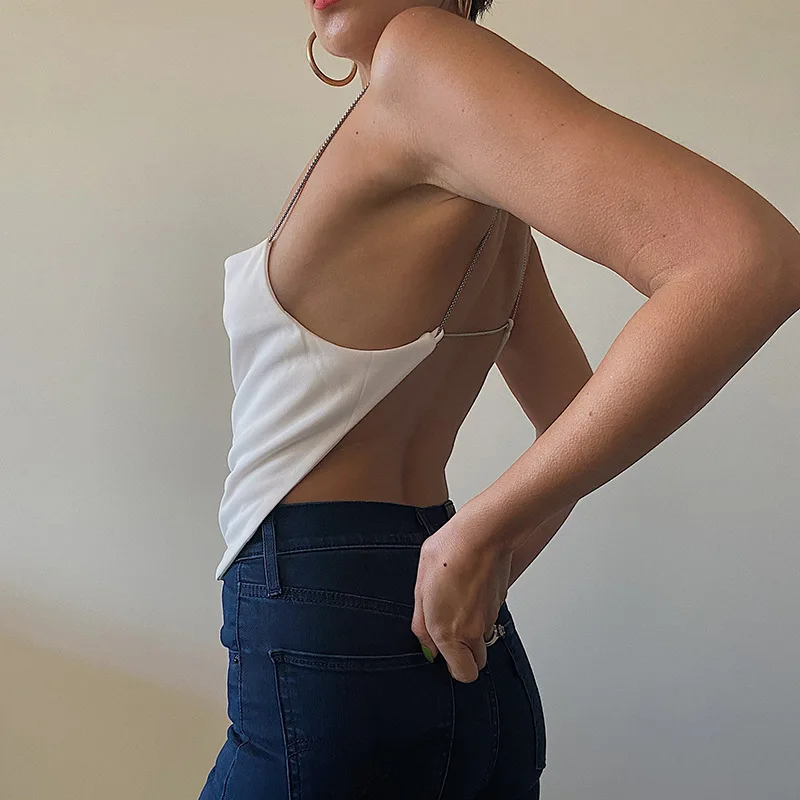 2022 For Summer Chic Fashion Black Chain Halter Wrap Crop Top Rave Festival Sexy Backless Sleeveless Women's Tops Club Party