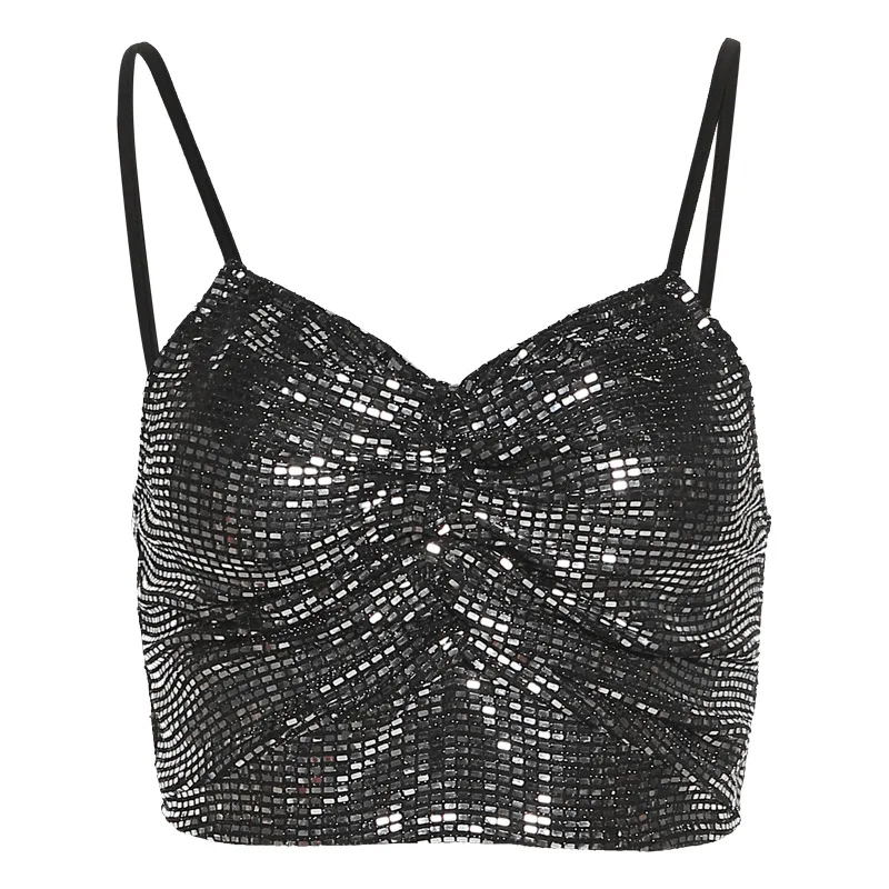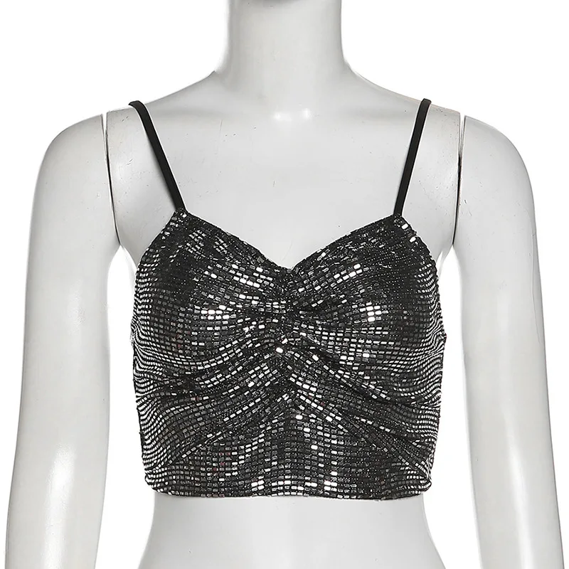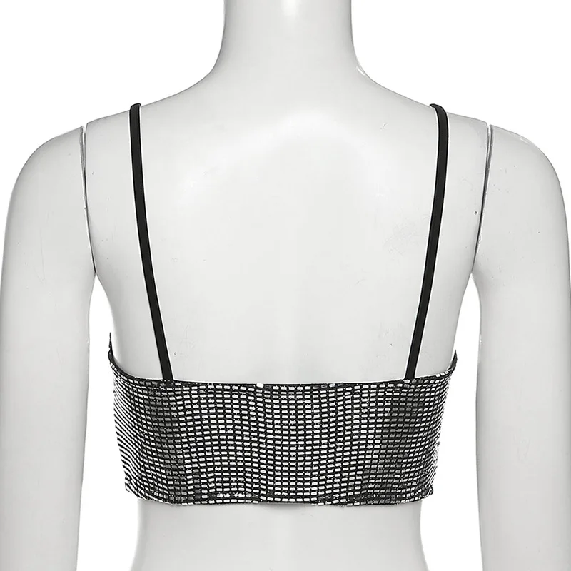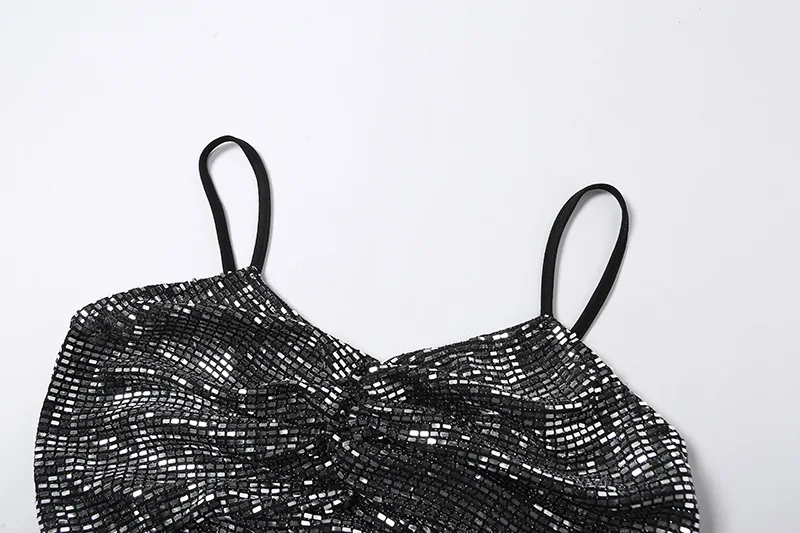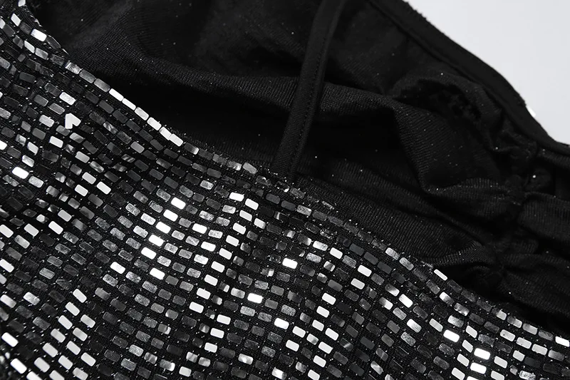 2022 For Summer Chic Fashion Black Sequins Women's Clothing Halter Wrap Crop Top Rave Festival Sexy Backless Tops Club Beach