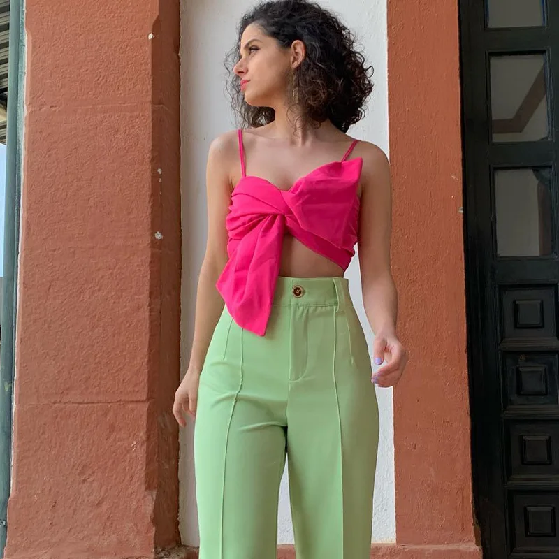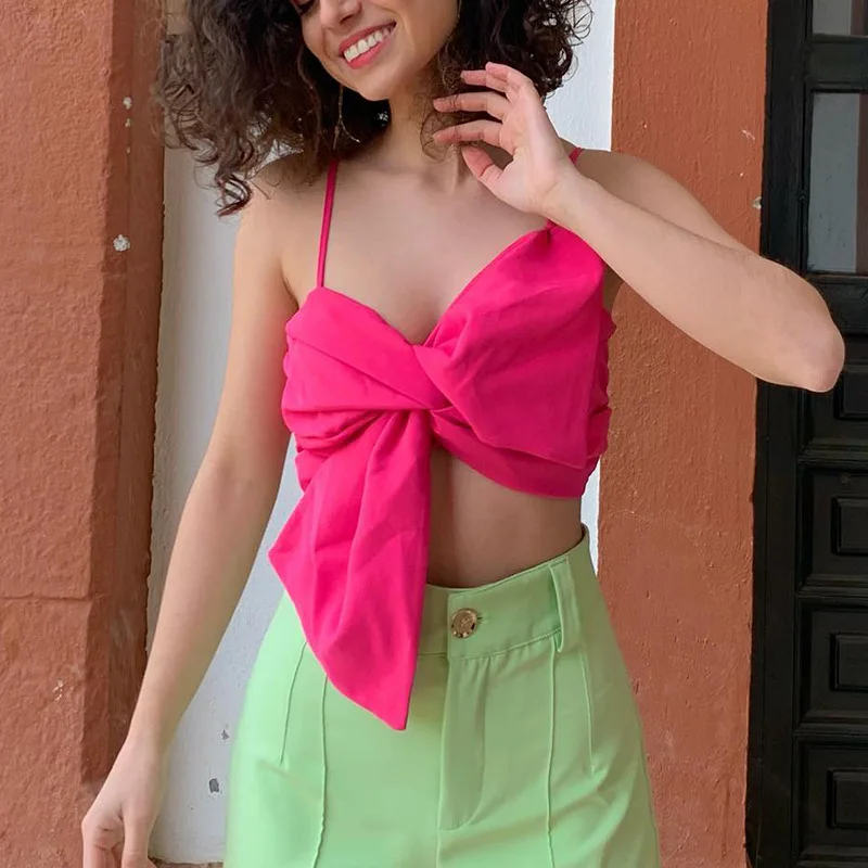 2022 For Summer Chic Fashion Green Butterfly Tie Halter Wrap Crop Top Rave Festival Sexy Backless Sling Women's Tops Club Party