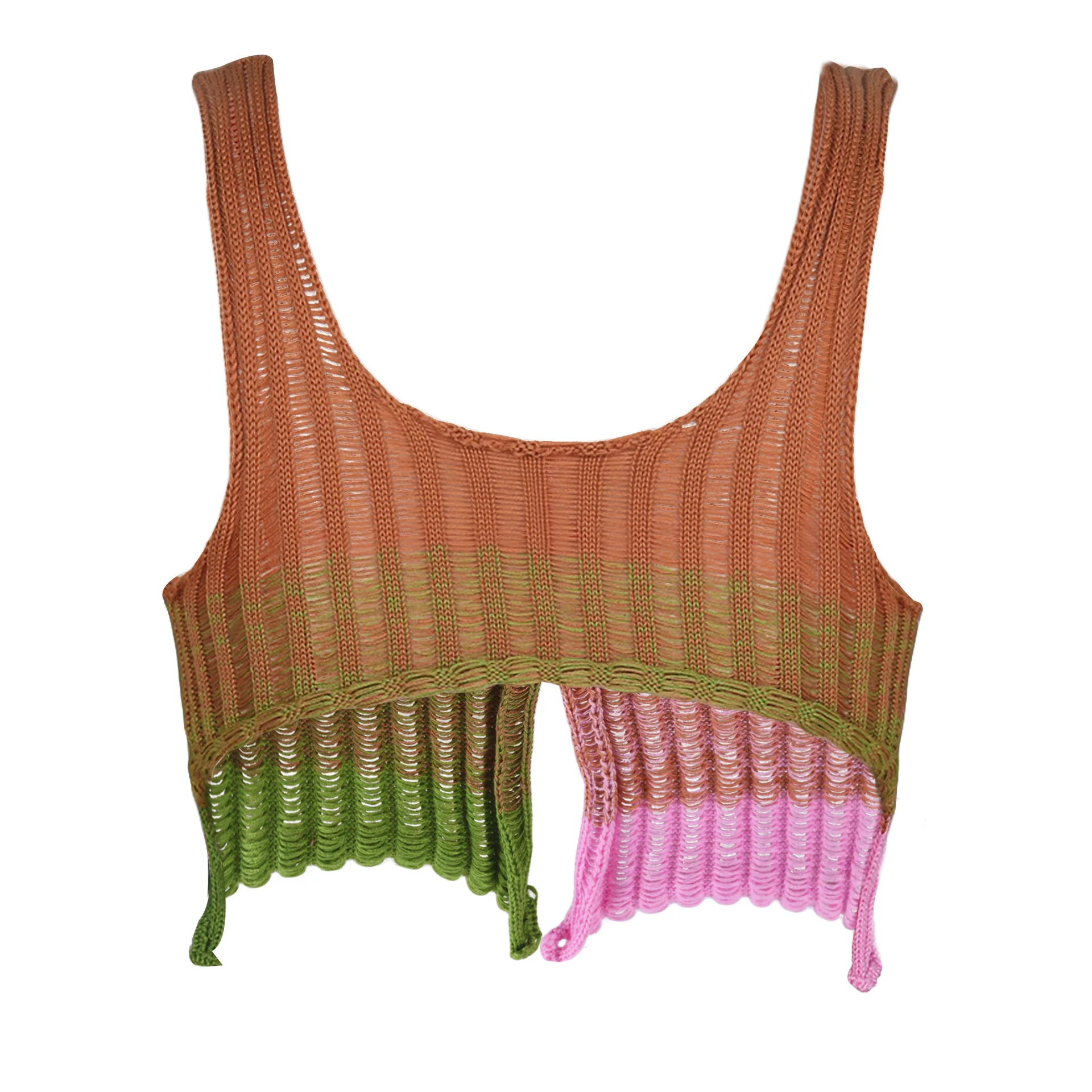 2022 For Summer Fashion Knitted Sweater Wrap Crop Top Women Summer Vest Sleeveless Grunge Fairycore Deep V-Neck Tops Streetwear