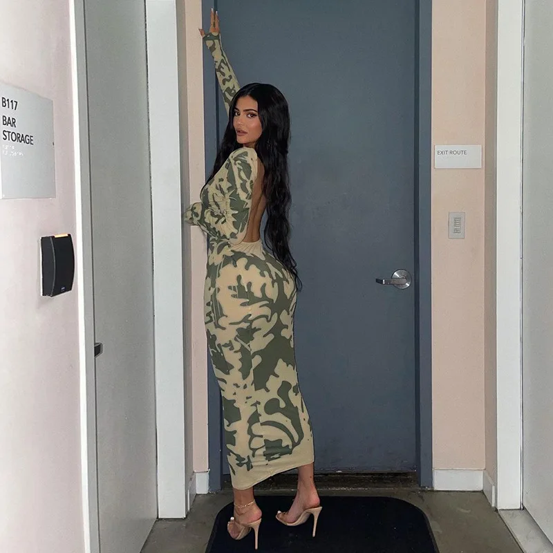 2022 Long Sleeve Backless Sexy Camouflage Dress Summer Women Fashion Streetwear Outfits Solid Club Clothing