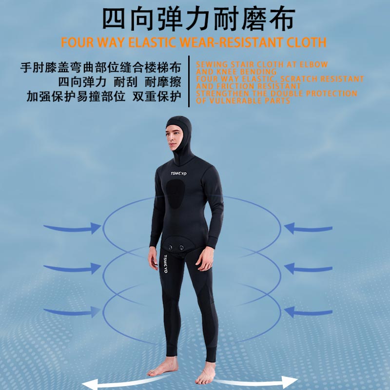 2022 Neoprene Scuba Diving wetsuit 3/5 mm Winter Warm  Men Hood Surfing Front Zipper Snorkeling Spearfishing Hooded Diving Suit
