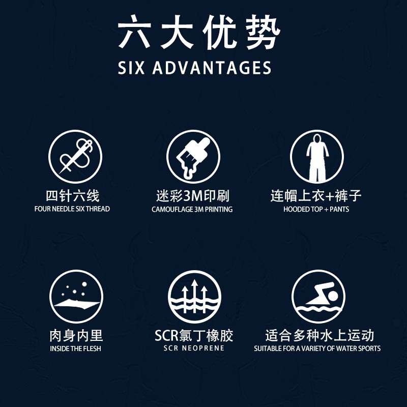 3mm Camouflage Long Sleeve Fission Hooded 2 Pieces Neoprene Submersible Suit For Men Keep Warm Waterproof Diving Suit