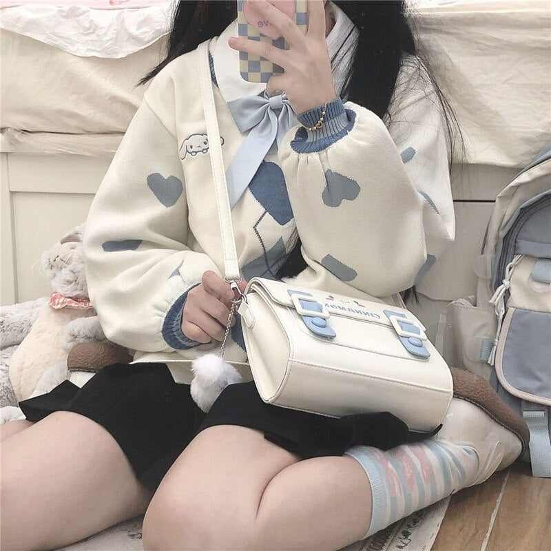 2022 New Fresh Print Heart Sweater Women V-neck Long Sleeve Cartoon Cute Jumper Japanese All Match Soft Kawaii Pullover Femme
