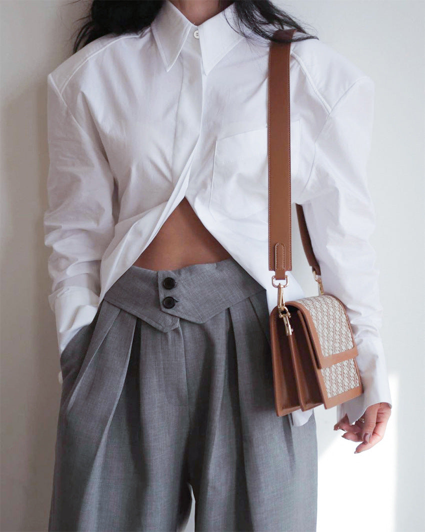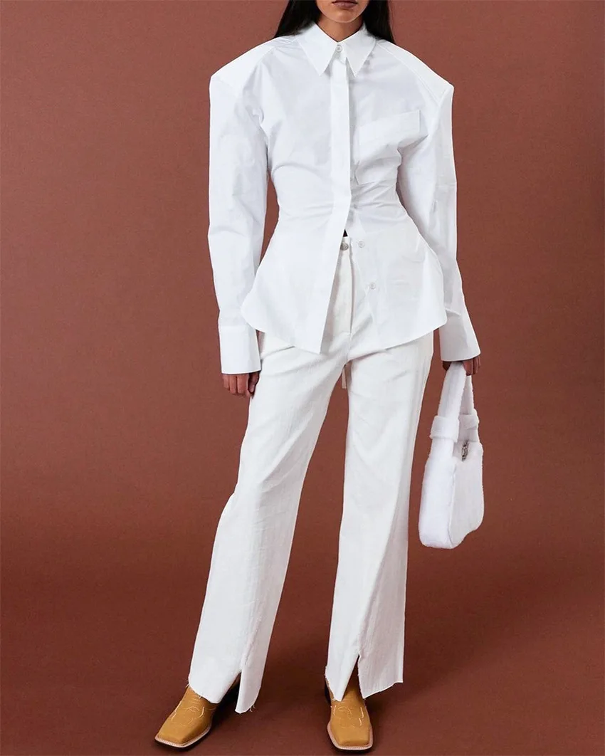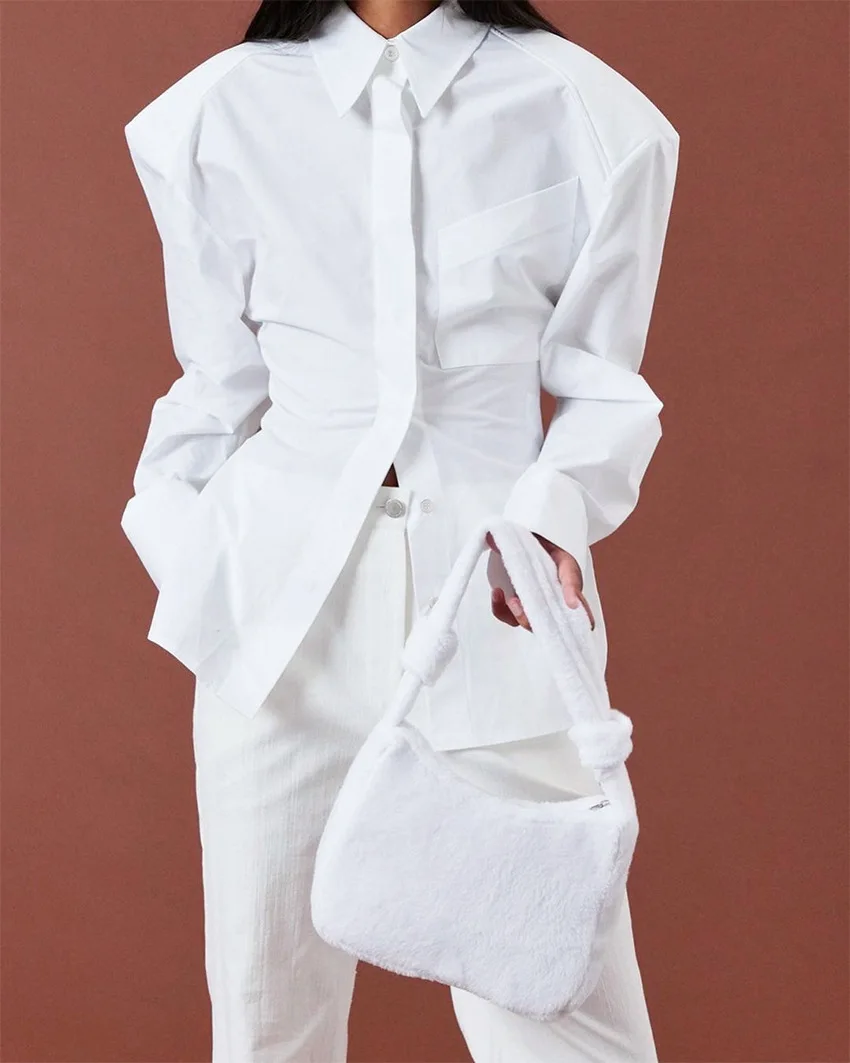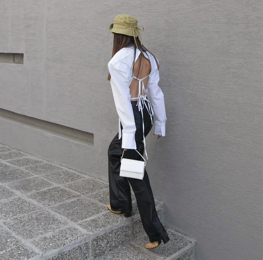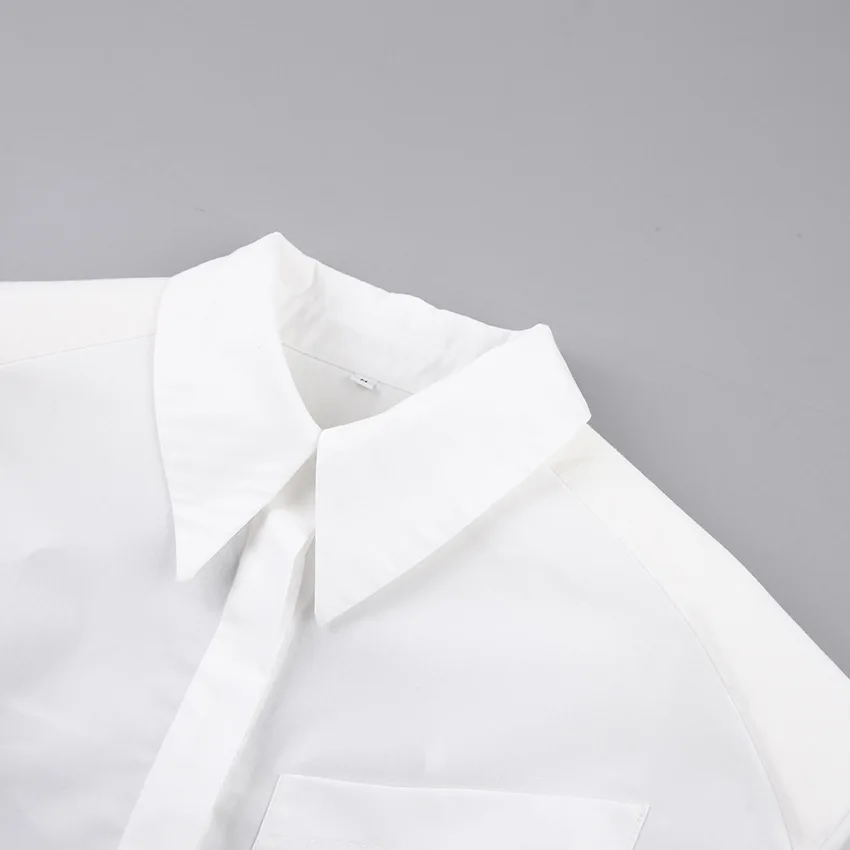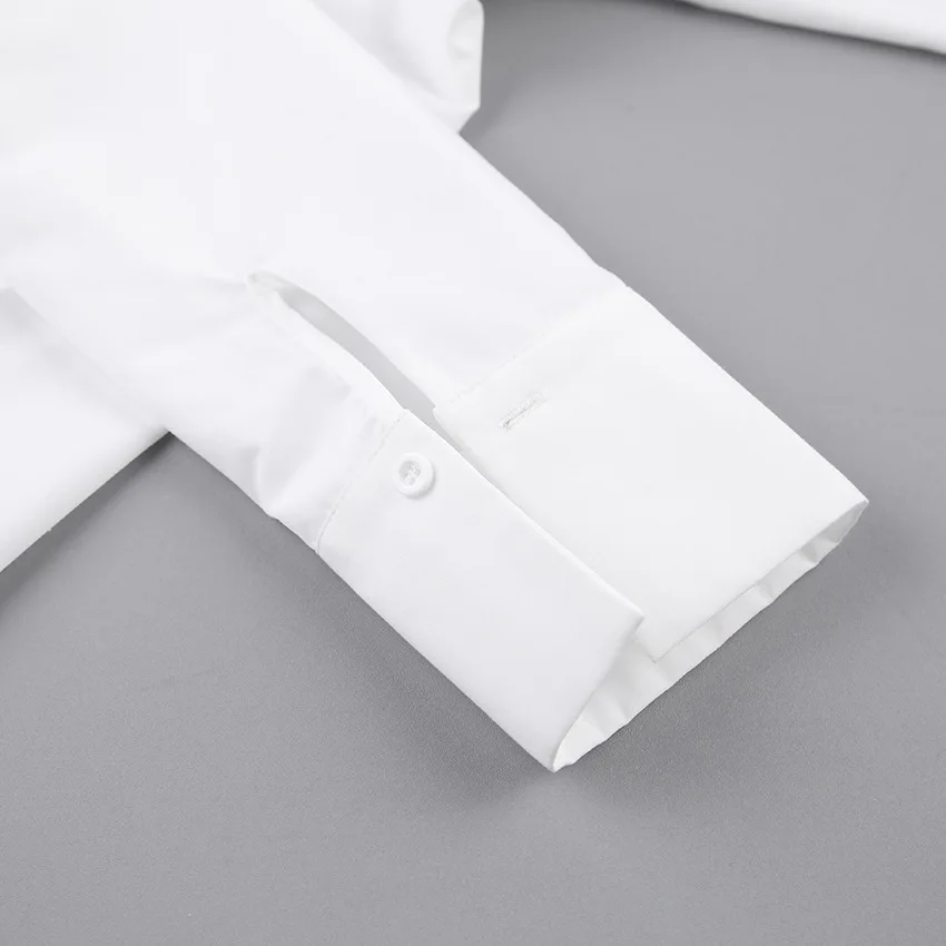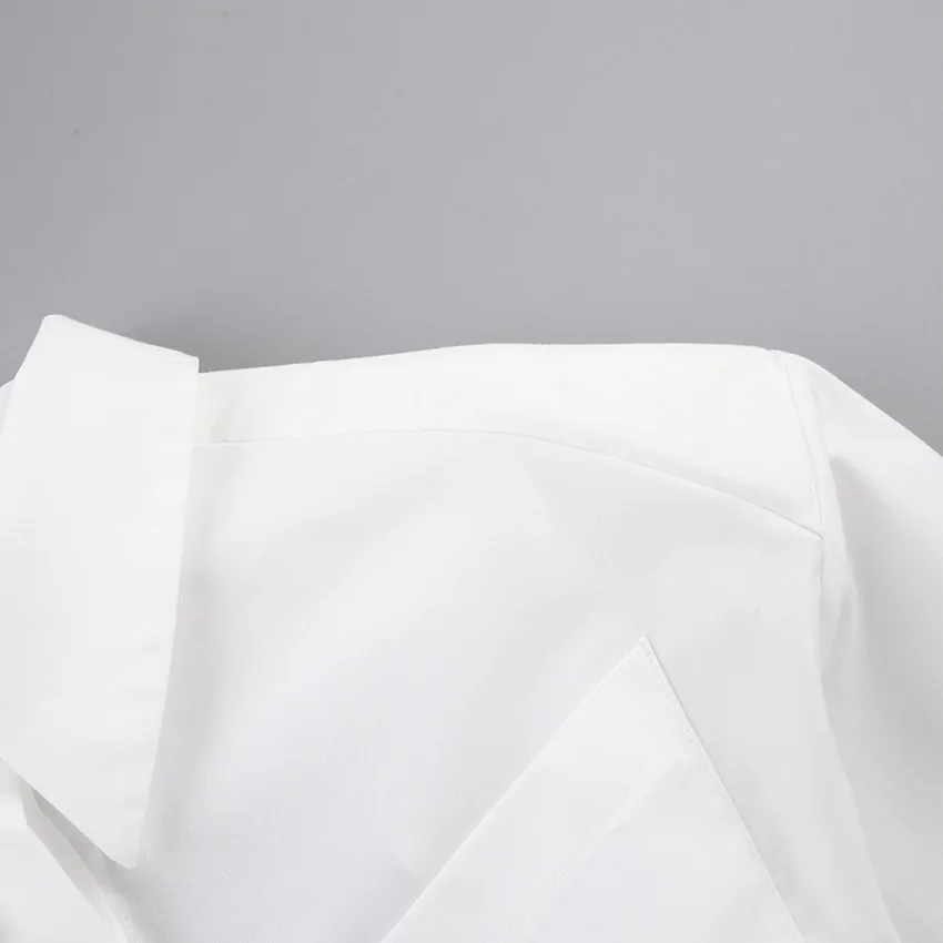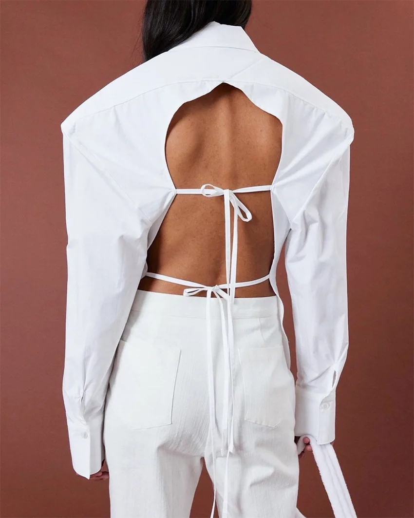 2022 Spring Fall Fashion Backless White Shirt Point Collar Shirt Long Sleeve Button Cardigan Casual Women‘s Clothes Work Streetw