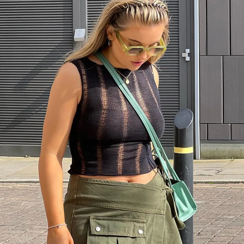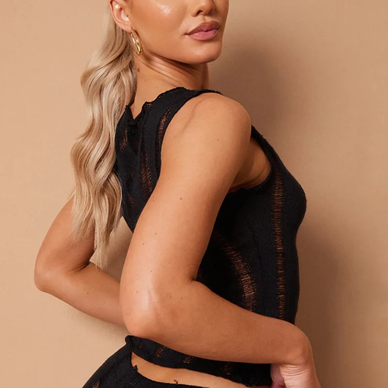 2022 Summer Chic Fashion Women's Clothing Transparent Knit Bodycon Crop Top Rave Festival Sexy Black Tops Club Beach Vacation