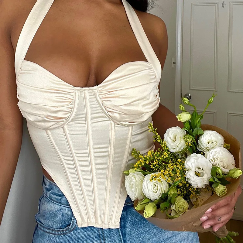 2022 Summer Chic Flowers Backless Fashion Women's Clothing White Casual Crop Top Rave Festival Sexy Sling Zipper Tops Shirt