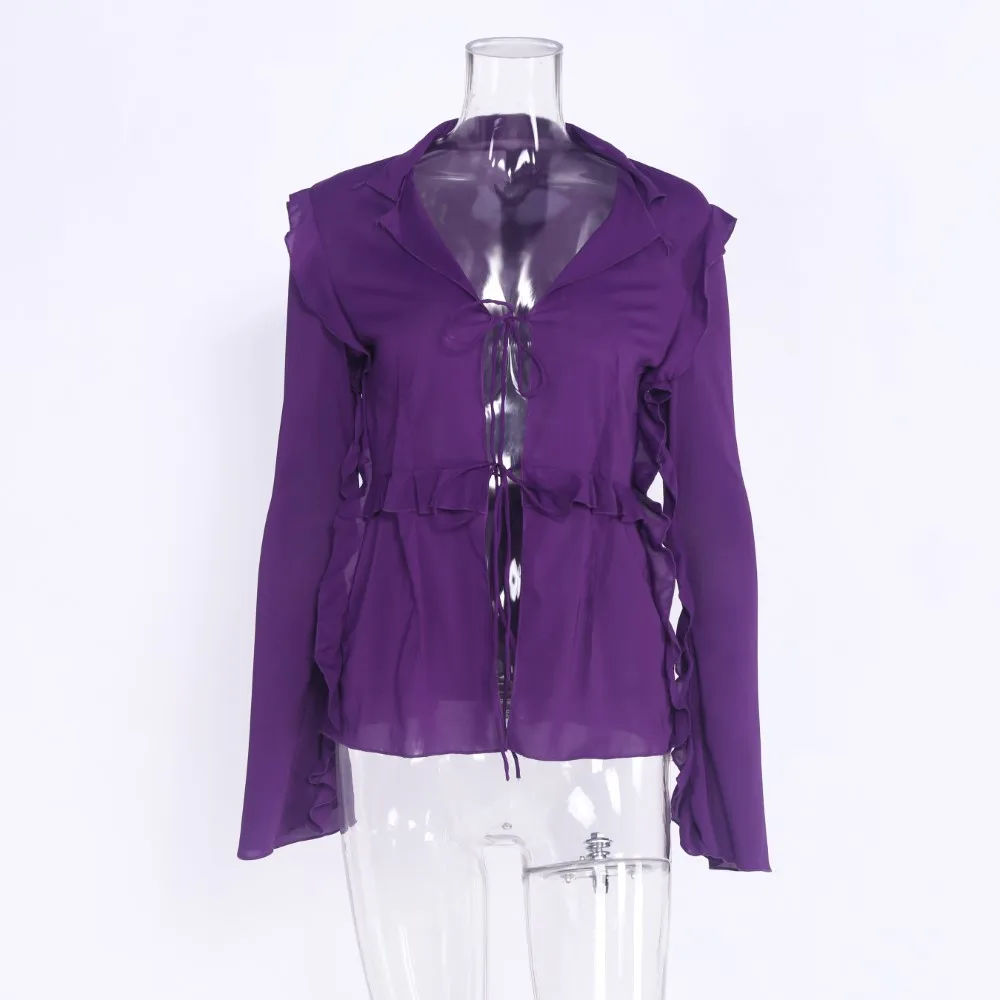 2022 Summer Chic Irregular Fashion Women's Clothing Long Sleeves Cardigan Crop Top Rave Festival Sexy Bandage Tops Club Beach Va