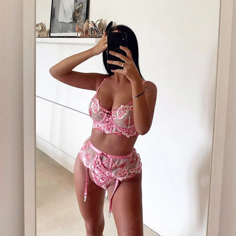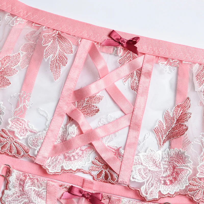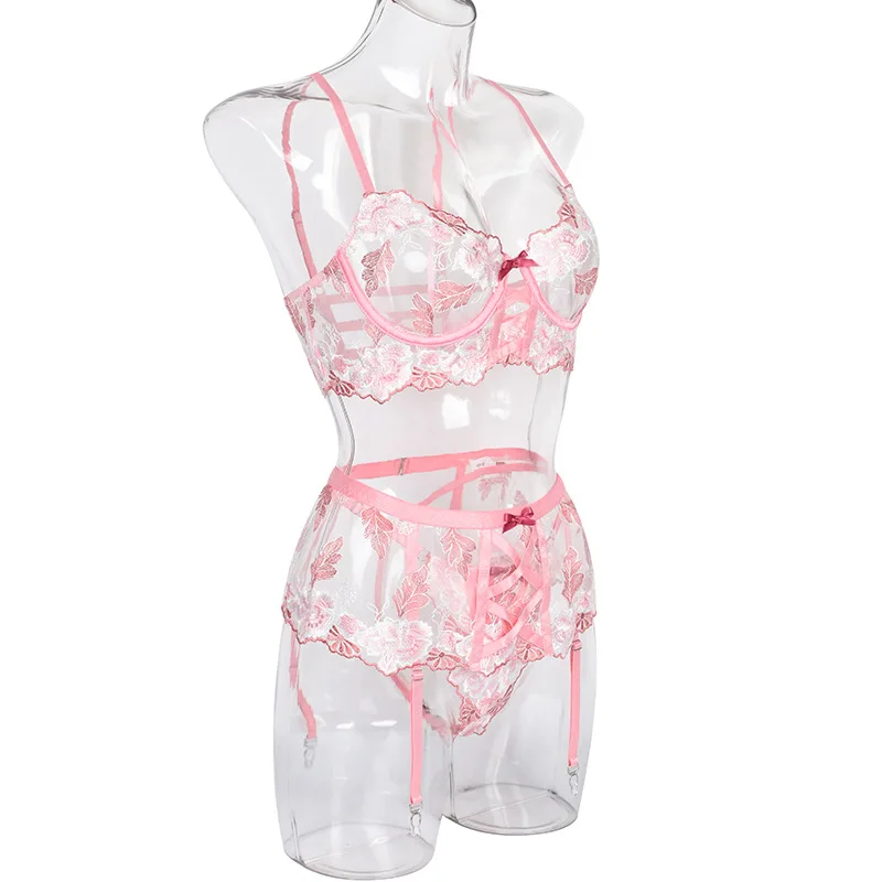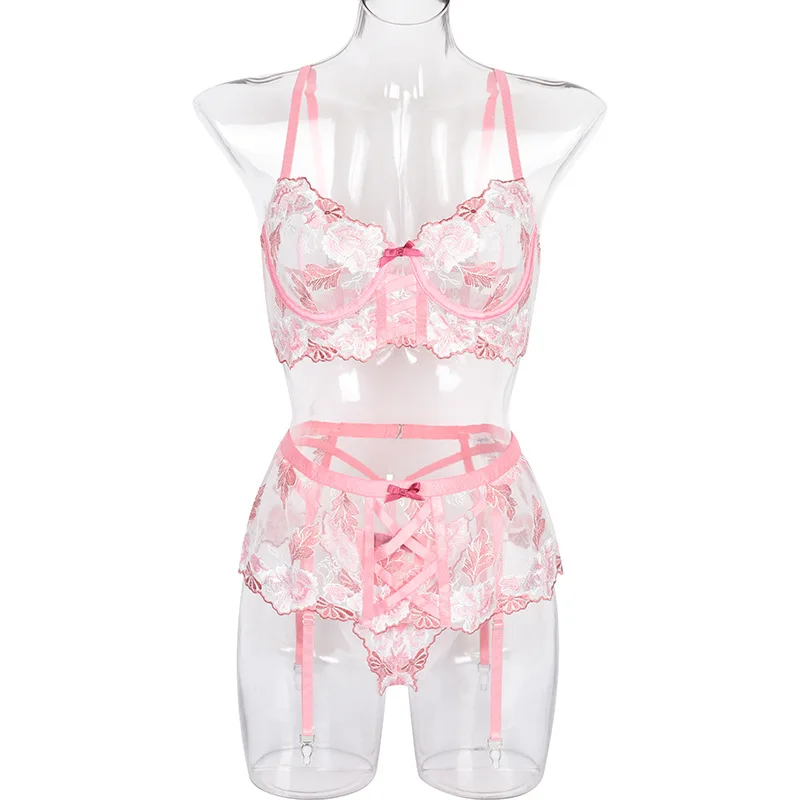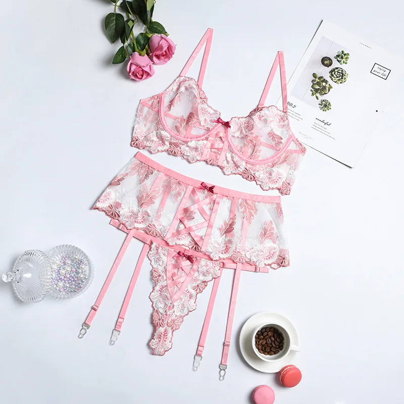 3 Pieces Set New Sensuall Lingerie Embroidery Exotic Costumes Lace Bras Suit With Garters Straps Bondage Erotic Underwear Set