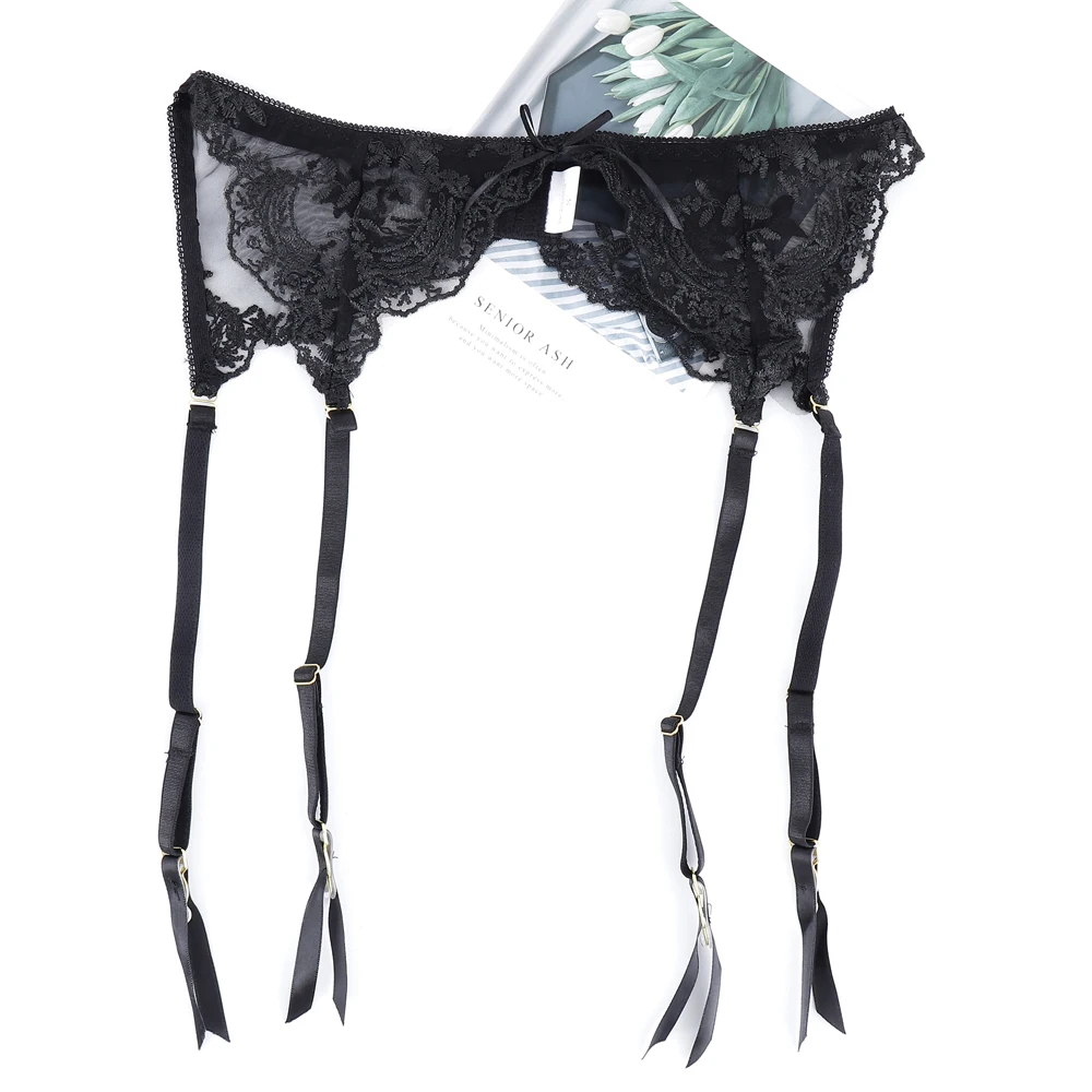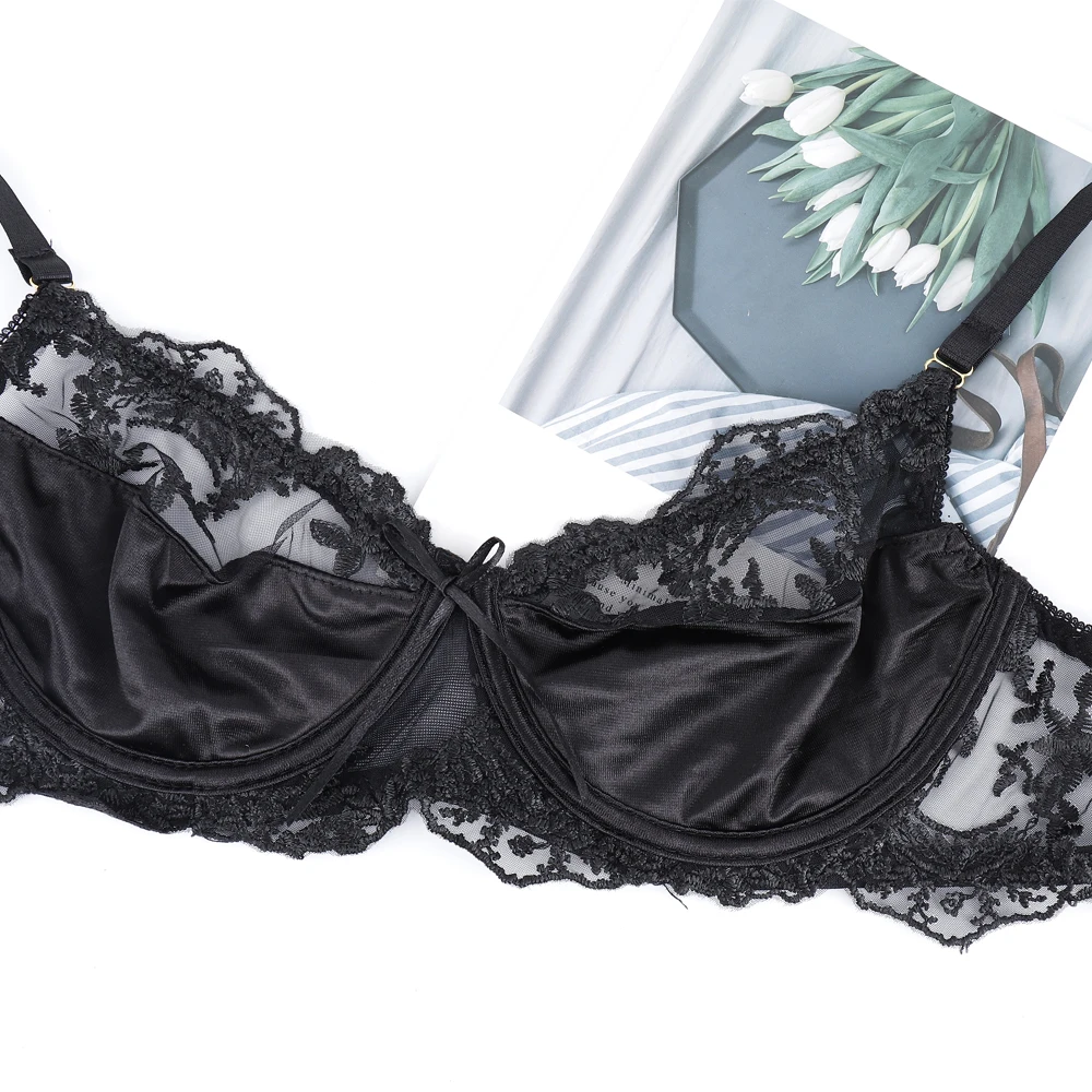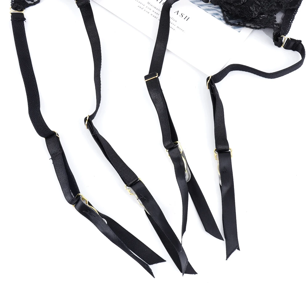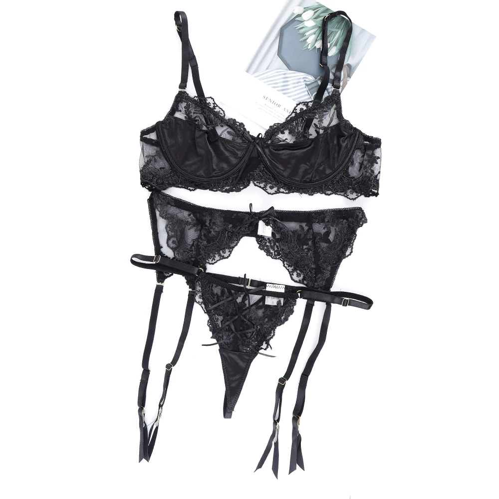 3 Pieces Set Women Sexy Embroidery Sensual Lingerie Underwear Lace Erotic Costumes Gathered Bra Transparent Exotic Underwear