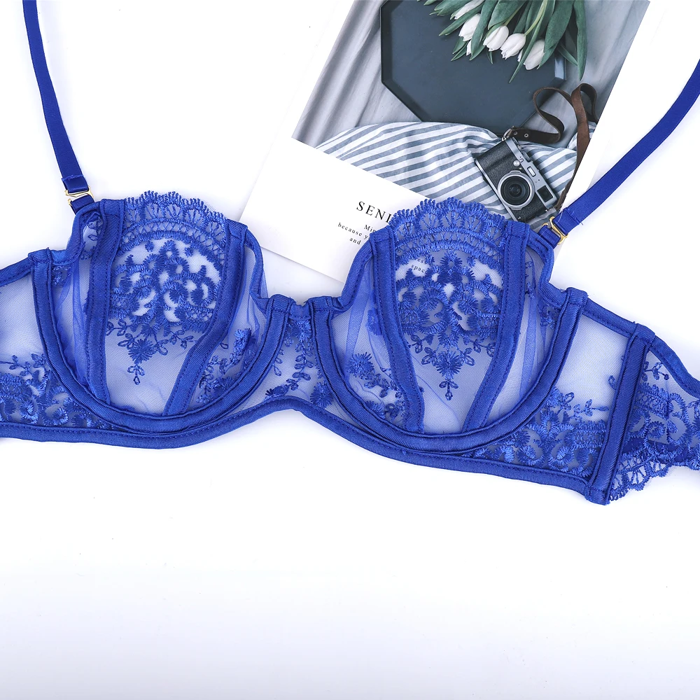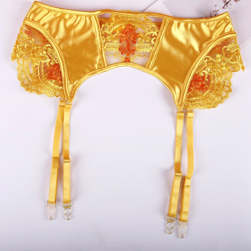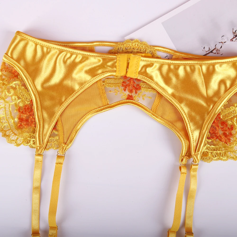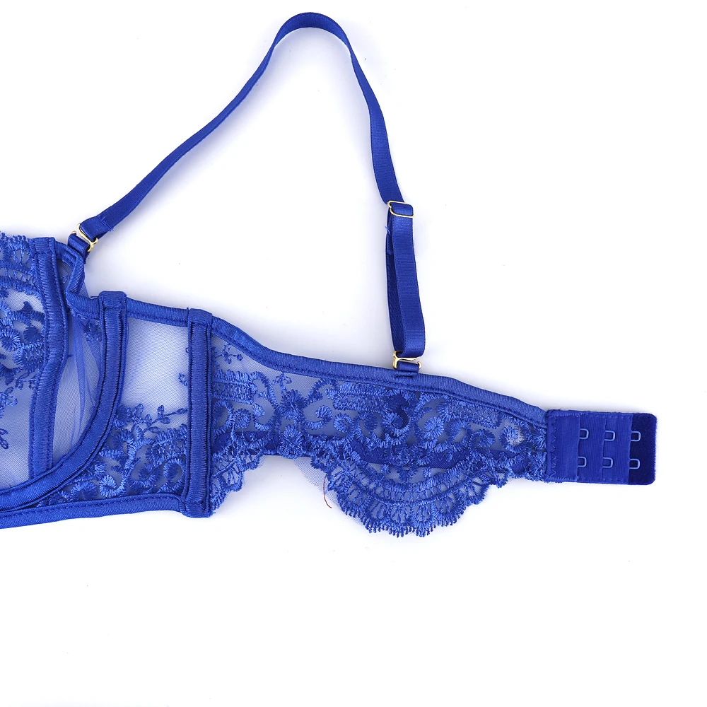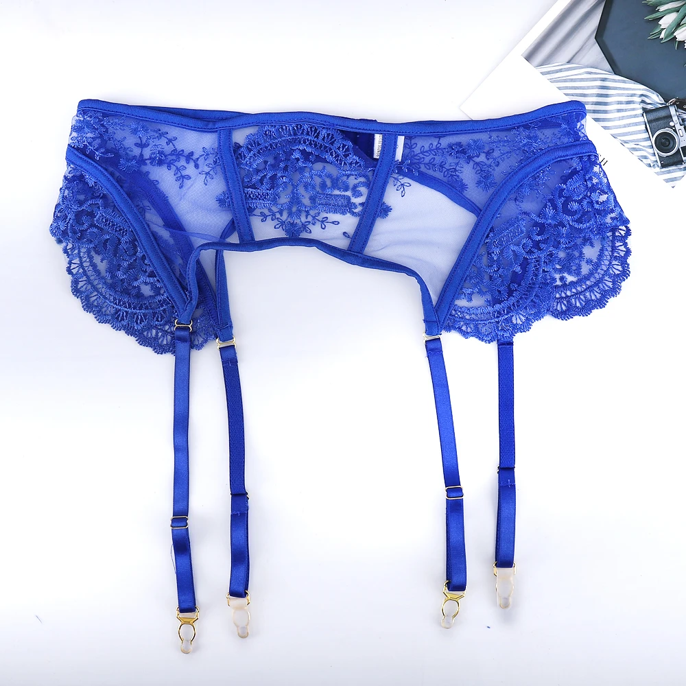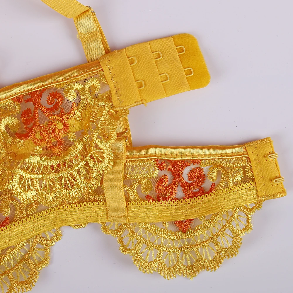 3 Pieces Set Women Sexy Lingerie Mesh Embroidery Underwear See-Through Sensual Lingerie Exotic Bra and Brief Set with Garters