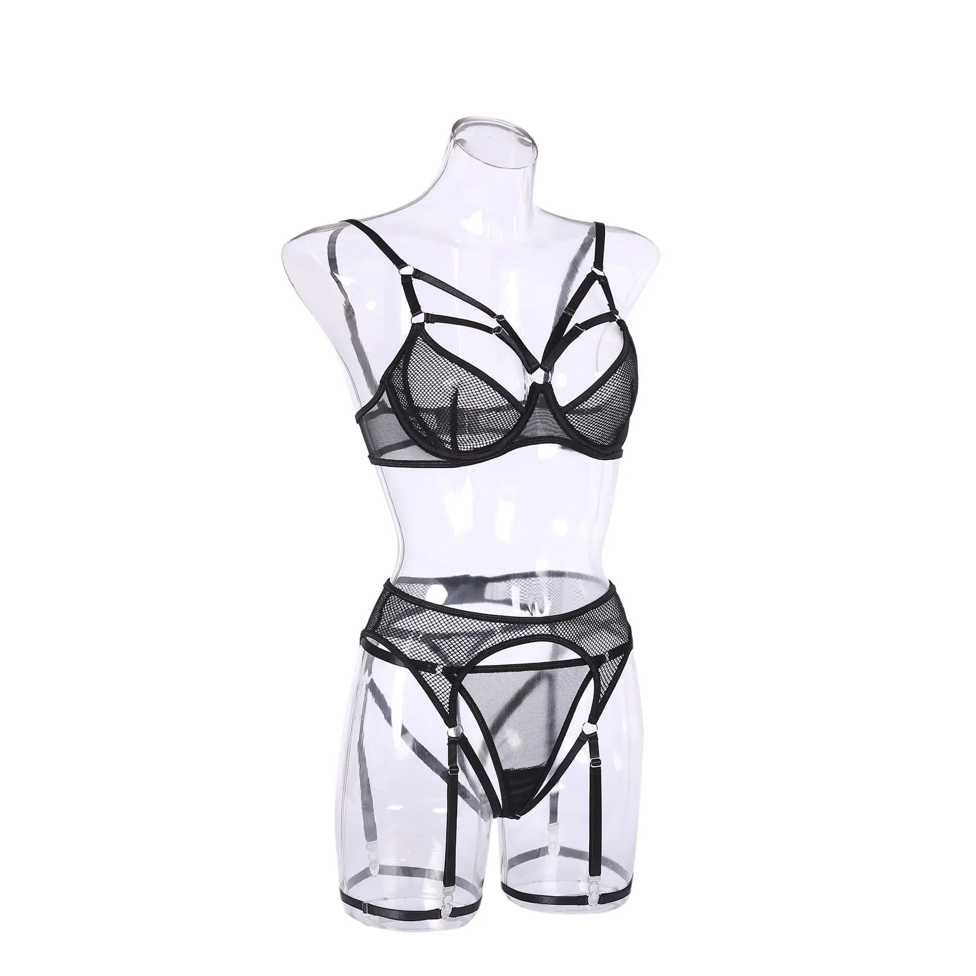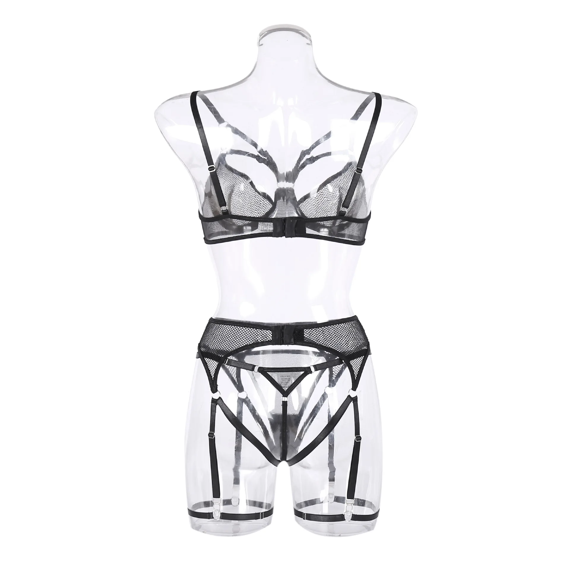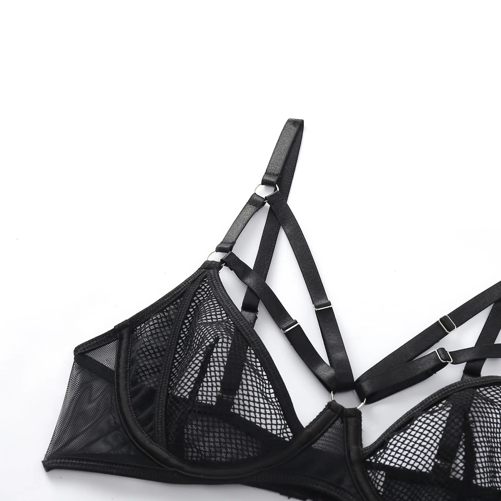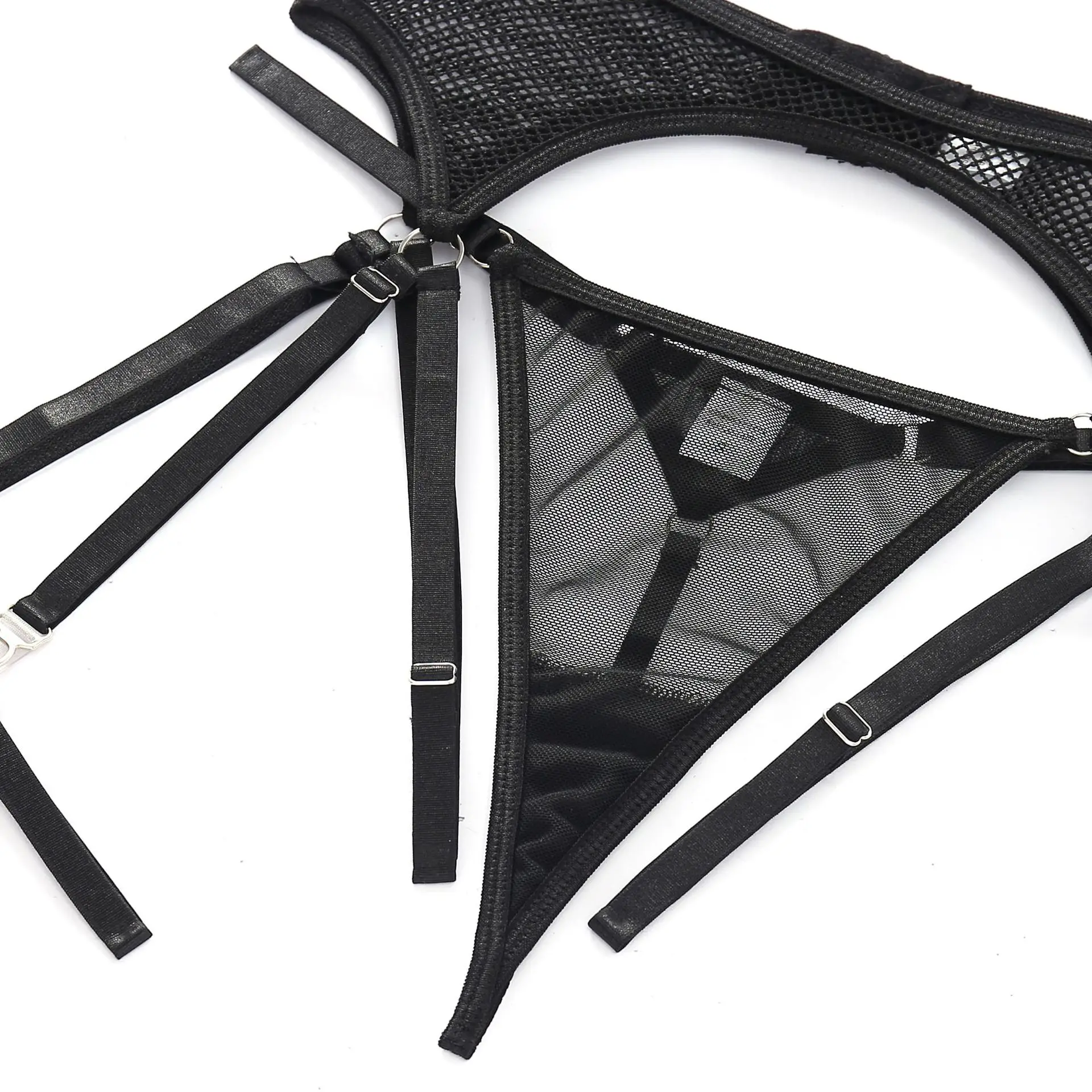 4 Pieces Set Sexy Exotic Costumes Sensual Lingerie Transparent Bandage Erotic Porn Mesh Bondage Sex Outfit Bra and Briefs Set