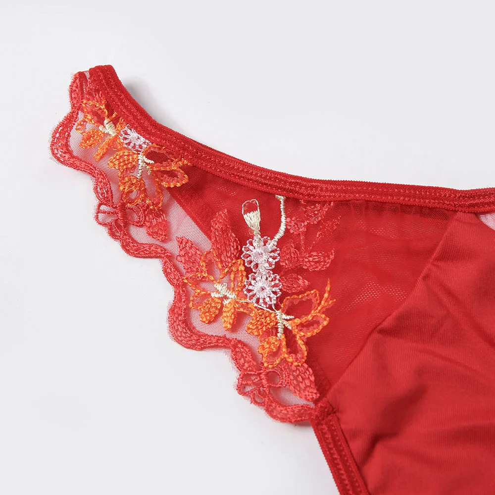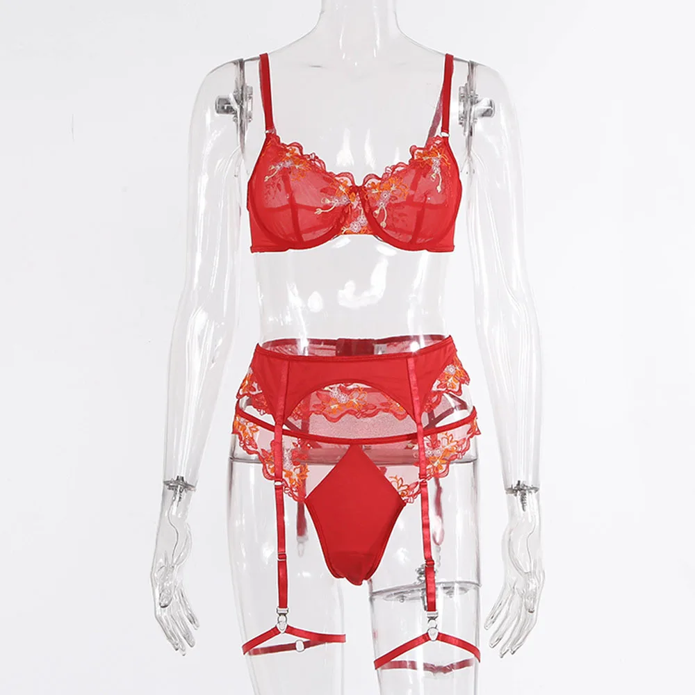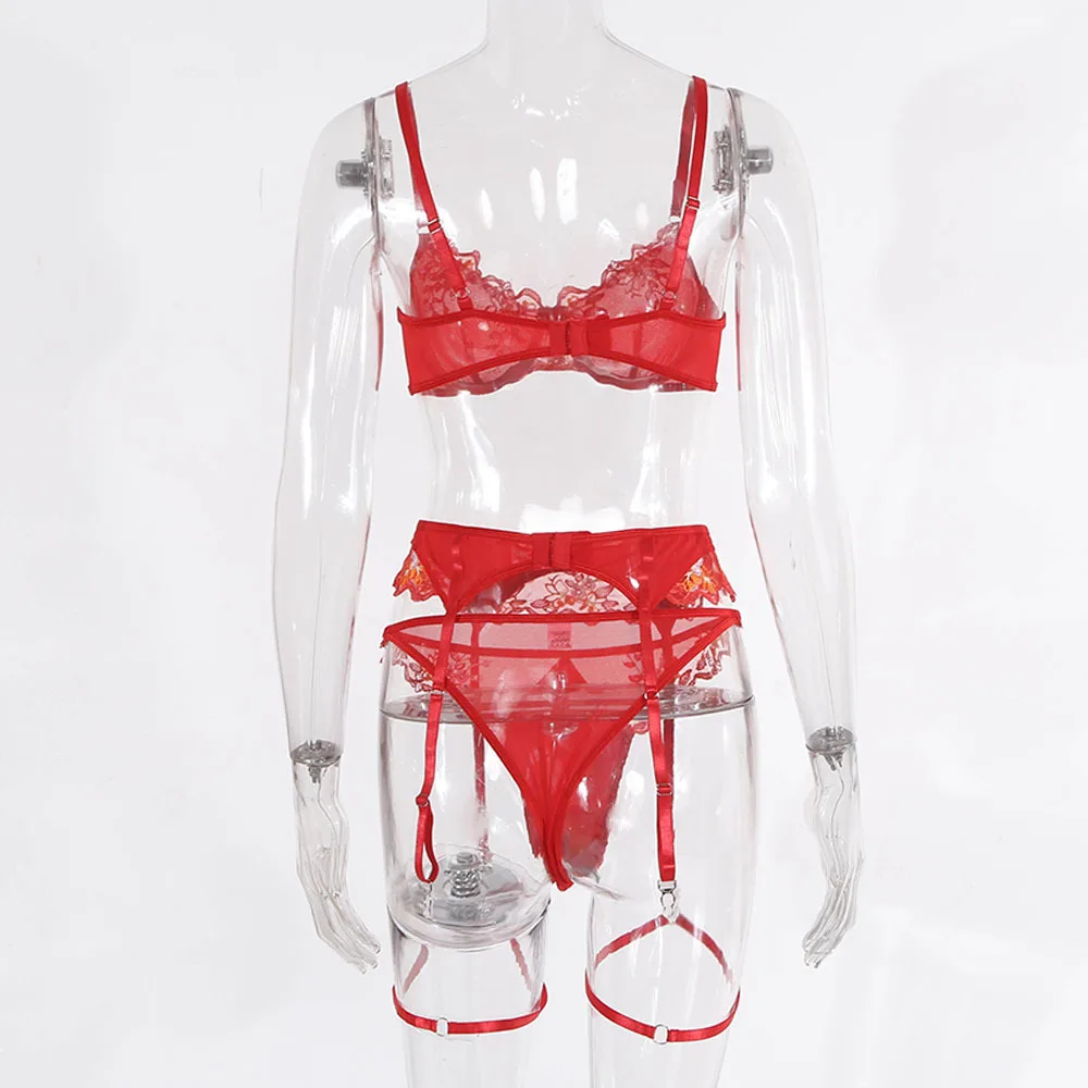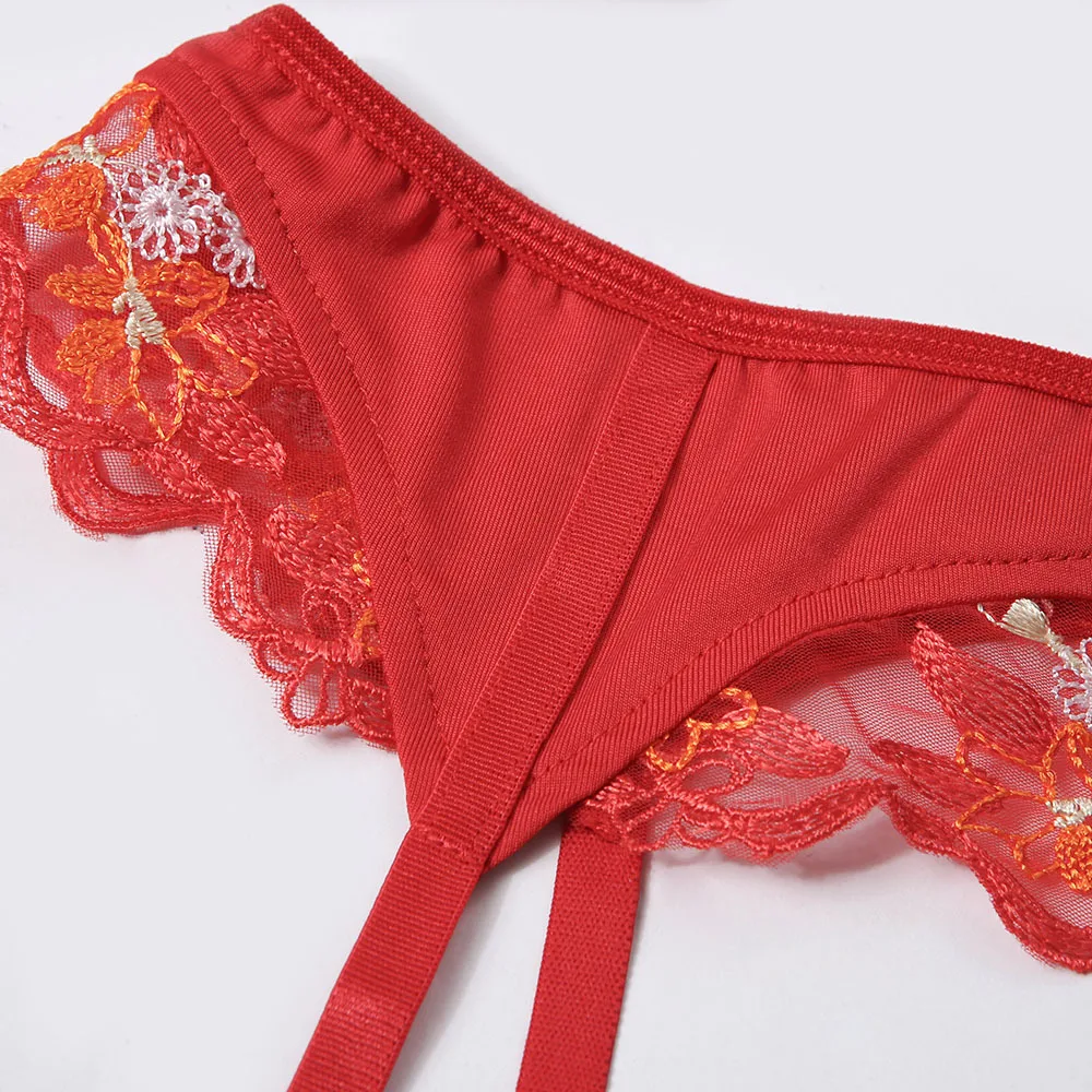 4 Pieces Set Women Sexy Lingerie Underwear Set Thigh Garters Flower Embroidery Bra and Panty Temptation Erotic Underwear Set