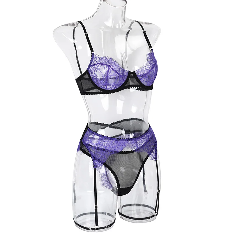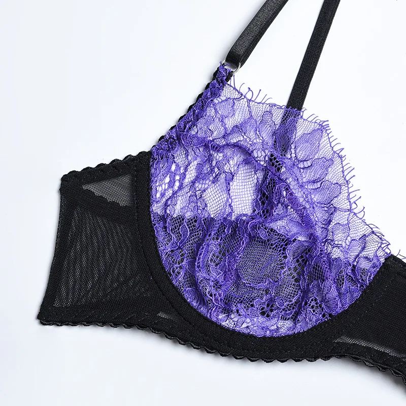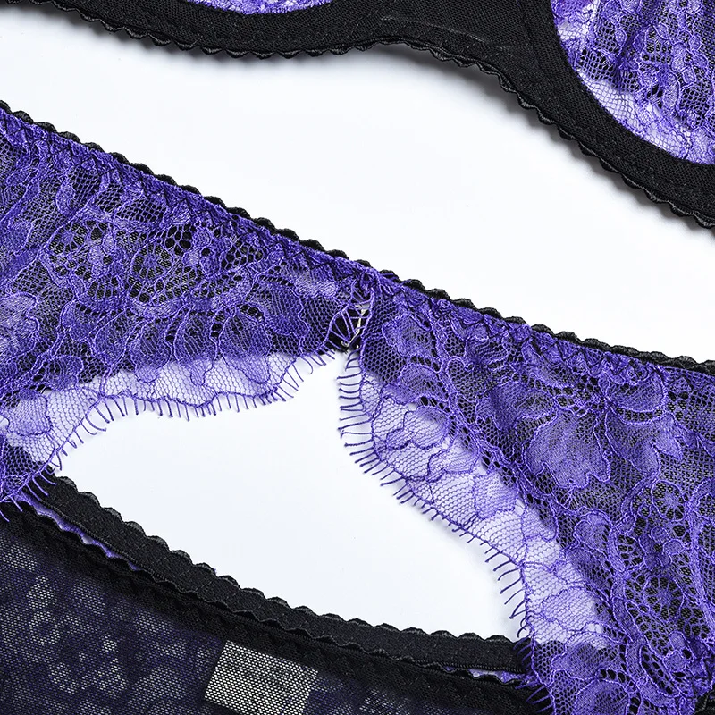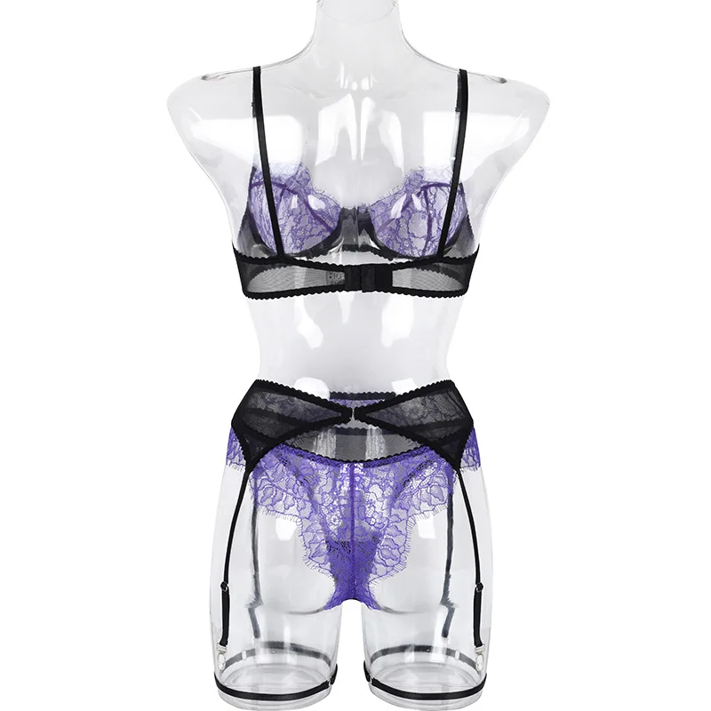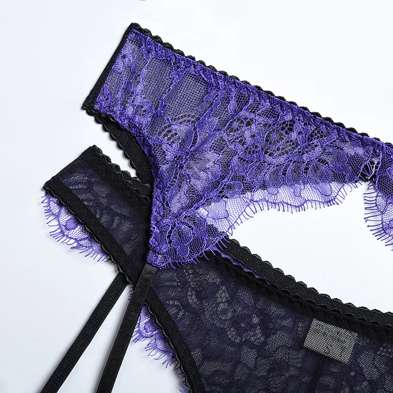 4 Pieces Women Sexy Lace Patchwork Underwear See-Through Erotic Bra and Brief Set Garters Sensual Lingerie Exotic Fancy Outfit