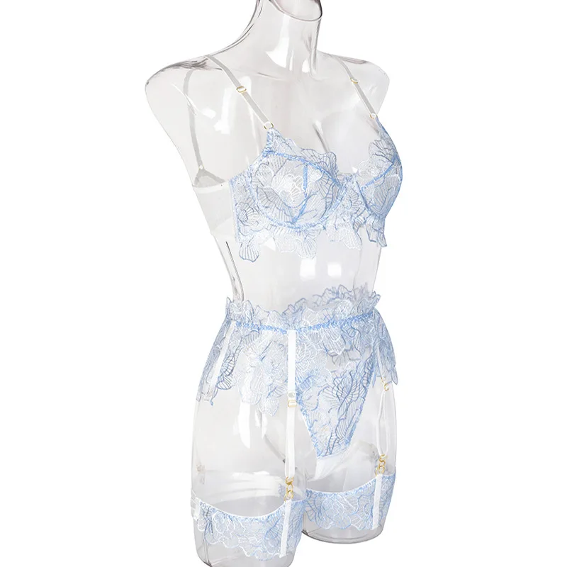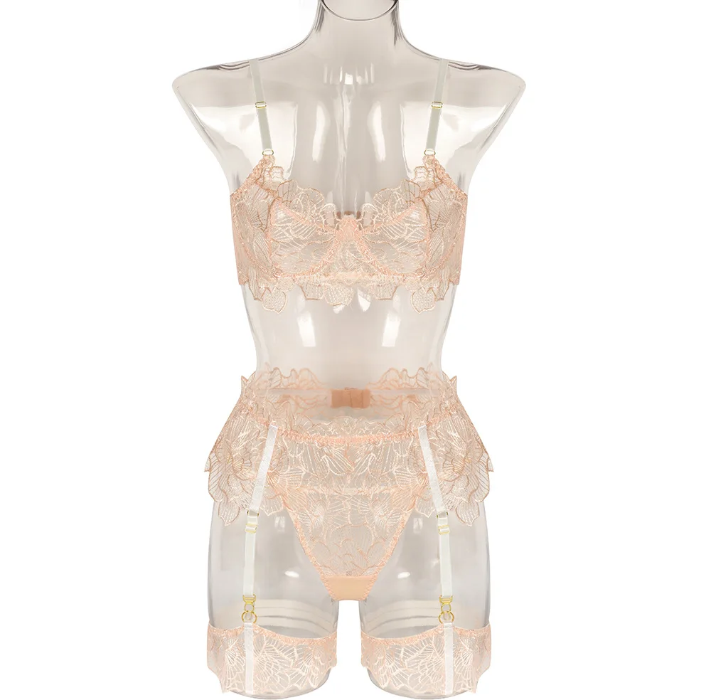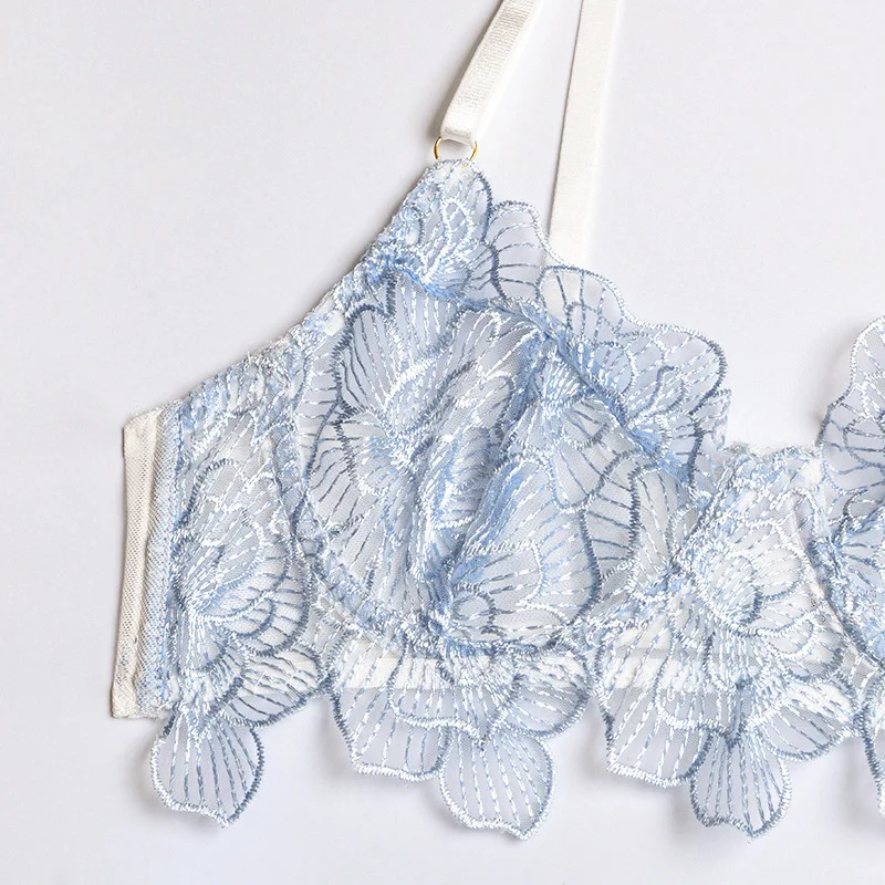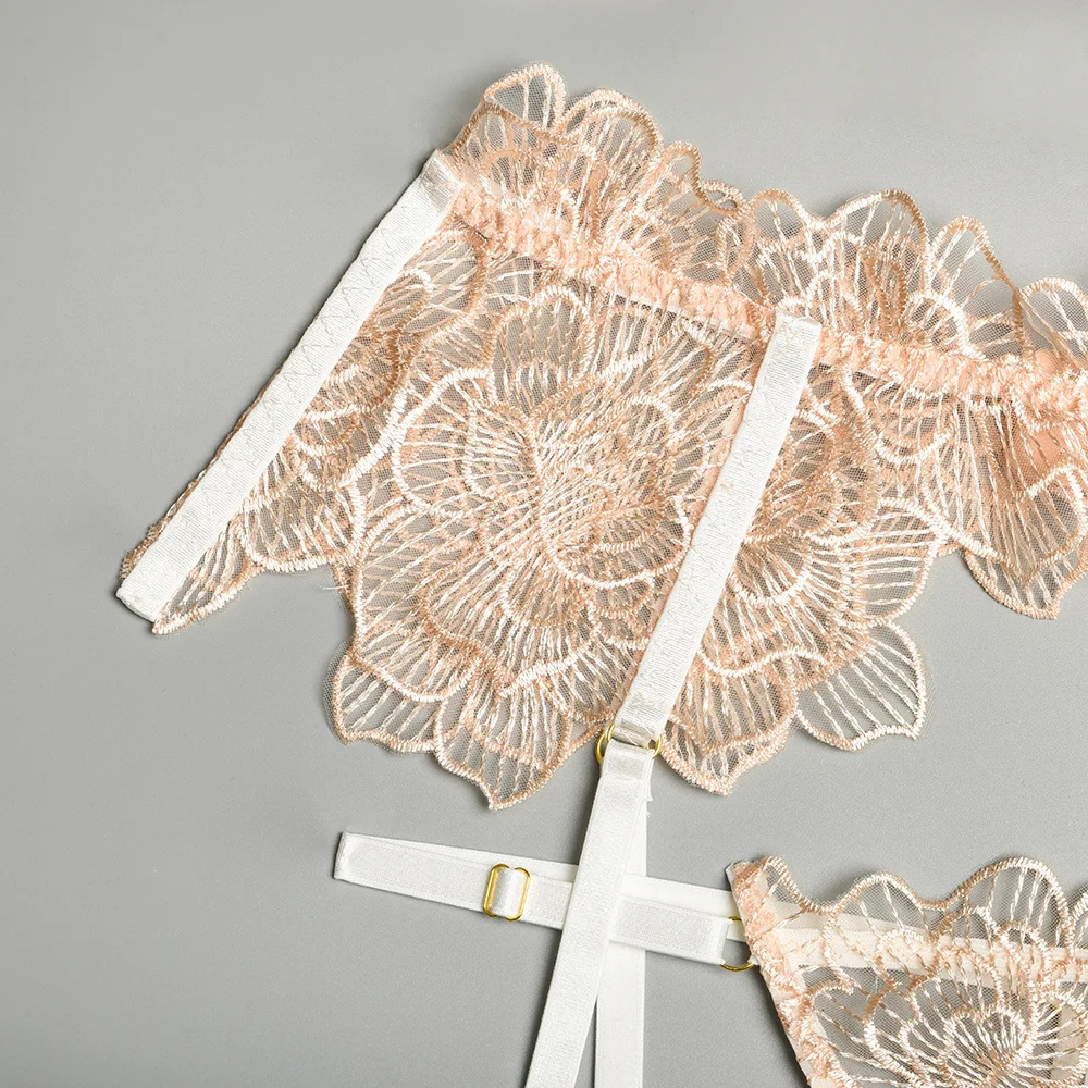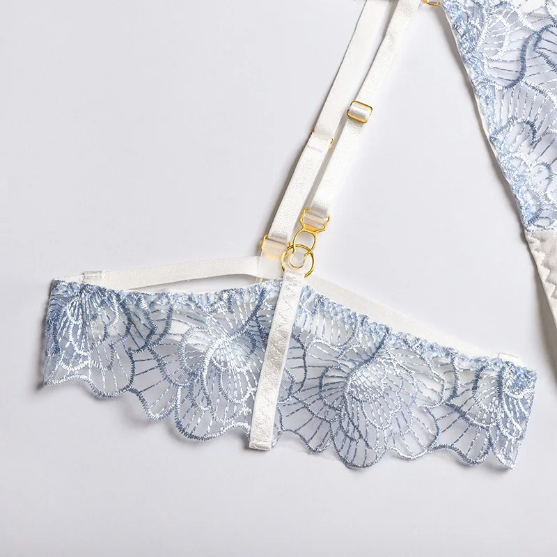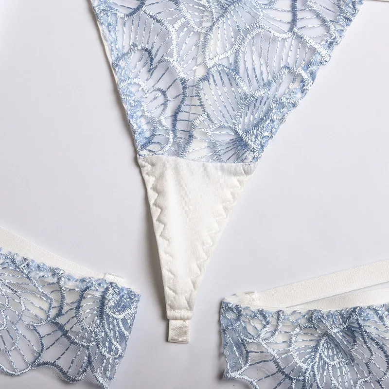 4 Pieces Women Summer Sexy Lace Embroider Underwear See-Through Erotic Bra and Brief Set Sensual Lingerie Exotic Fancy Outfit