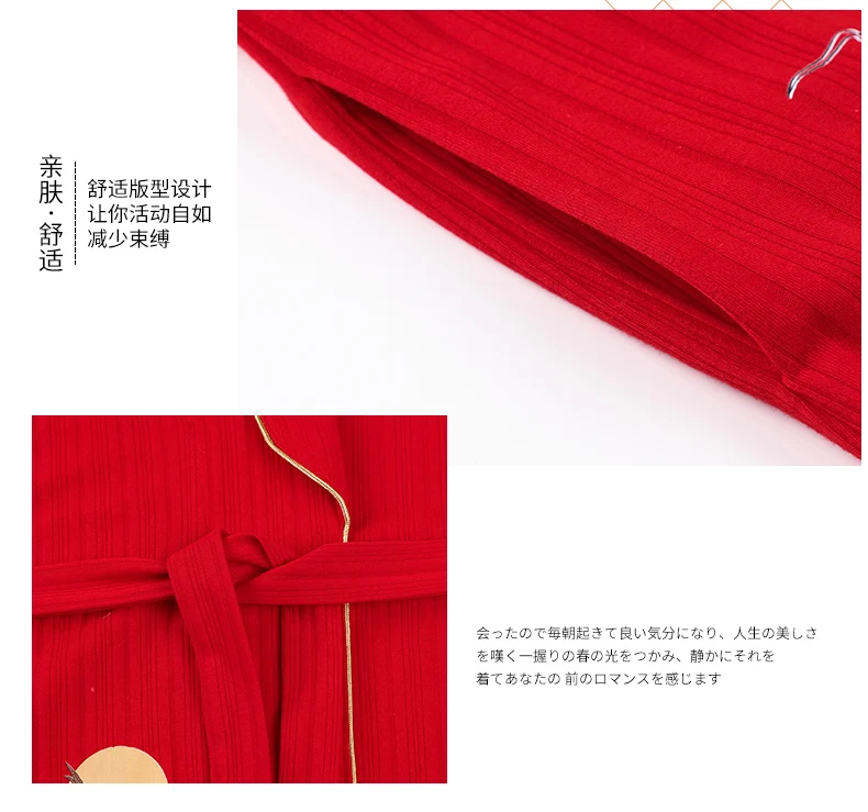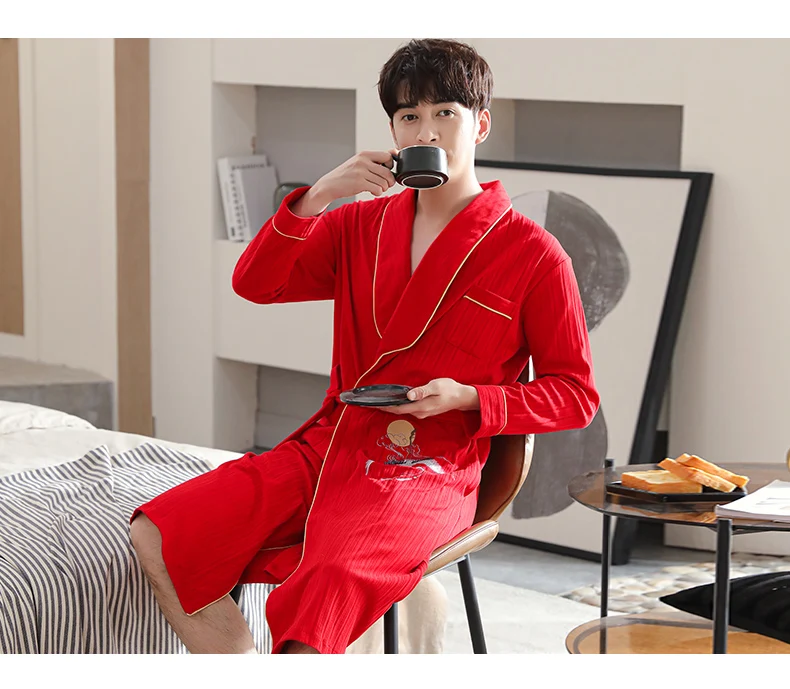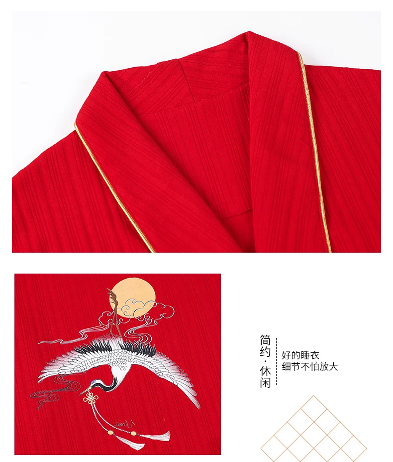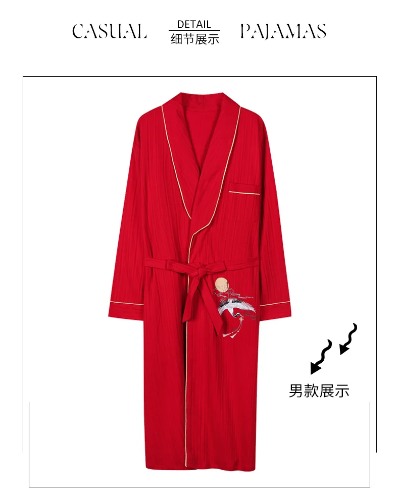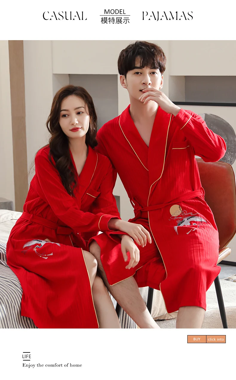 4XL Autumn Bathrobe Couples Cotton Kimono Wedding Festive Red Robes For Male Soild Long Bath Robe Bride Robe Dressing Gown
