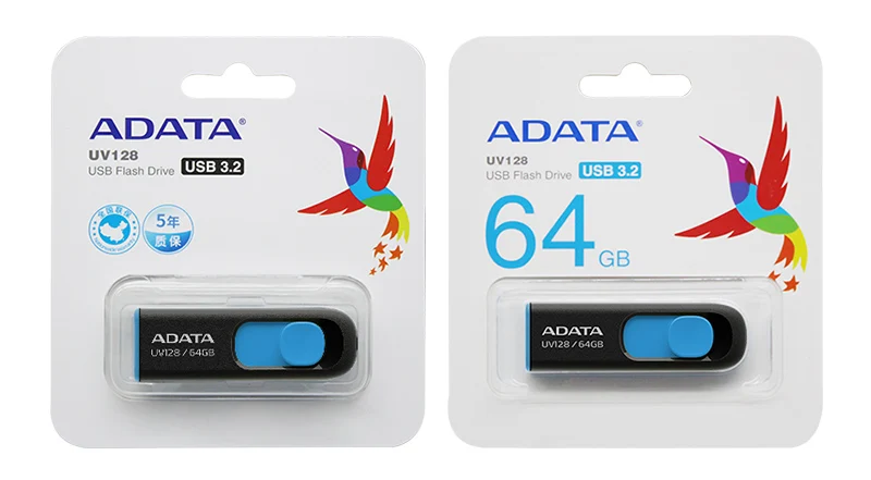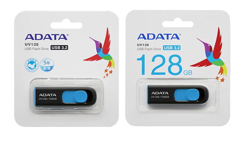 ADATA UV128 USB Flash Drive 128GB 64GB 32GB 16GB USB 3.2 Flash Drive Retractable Capless Pen Drive High Speed Pendrive