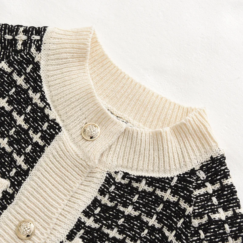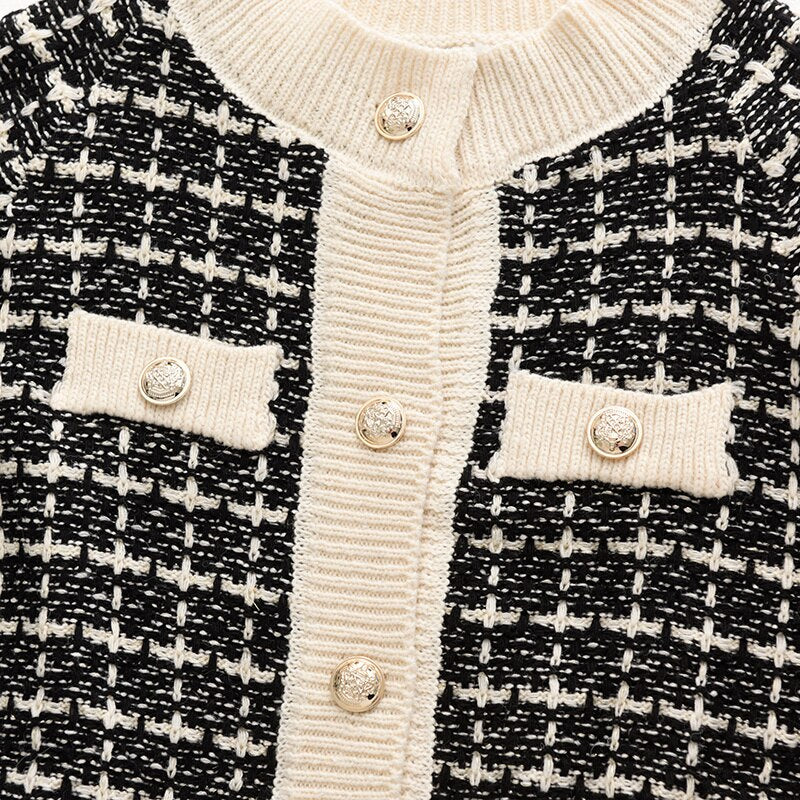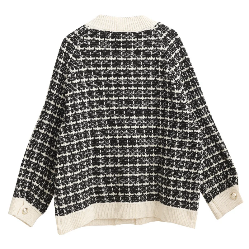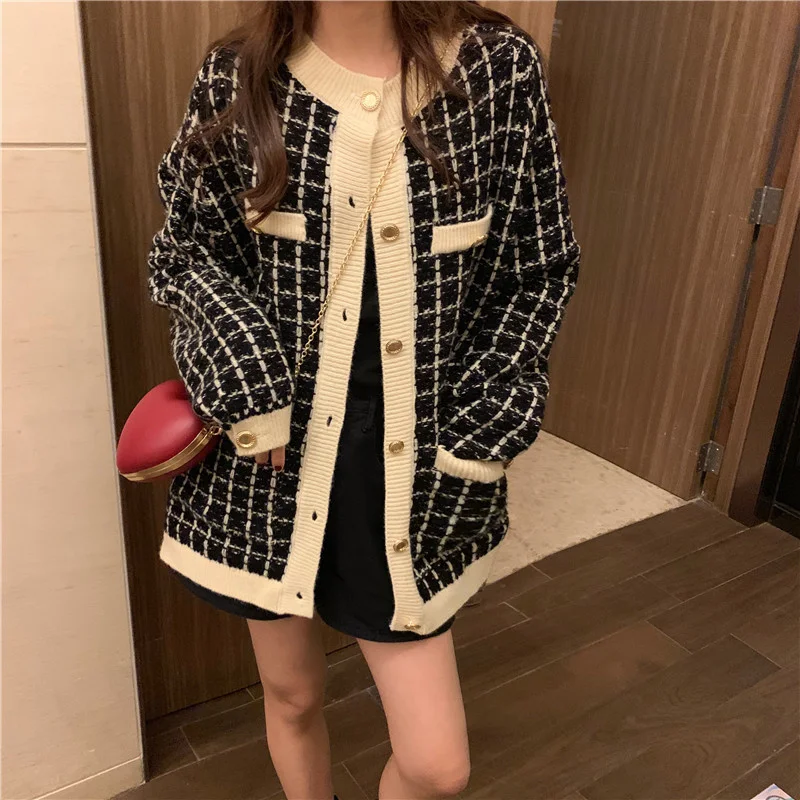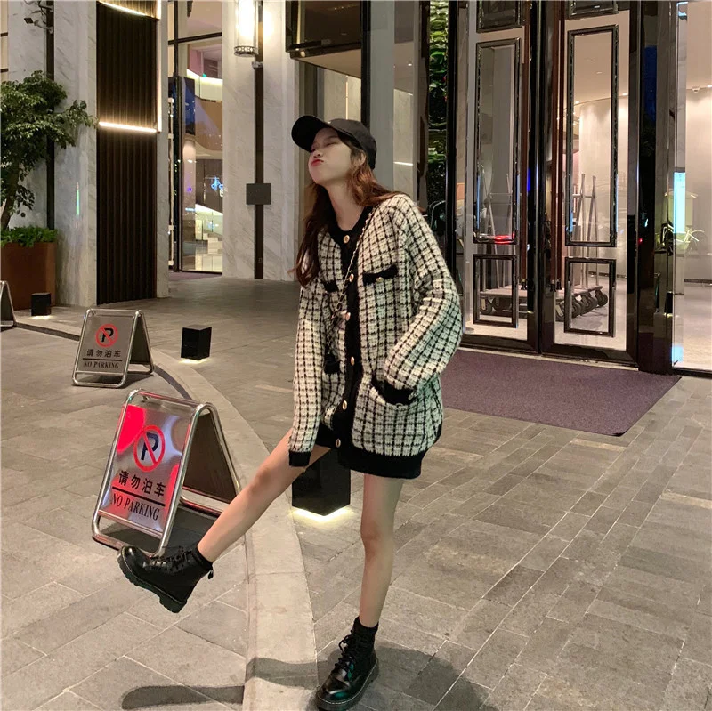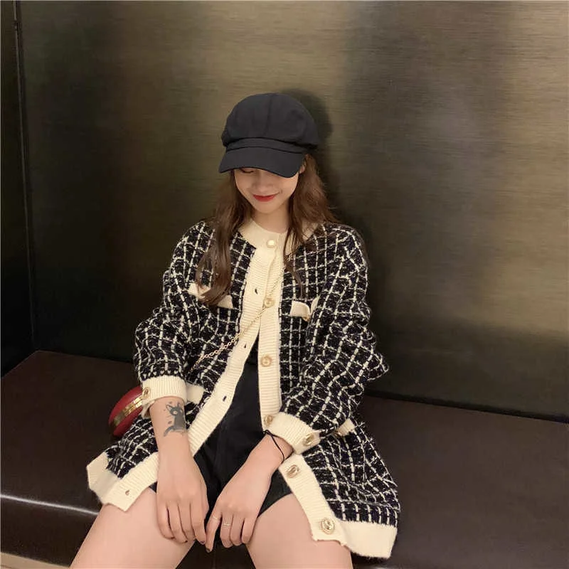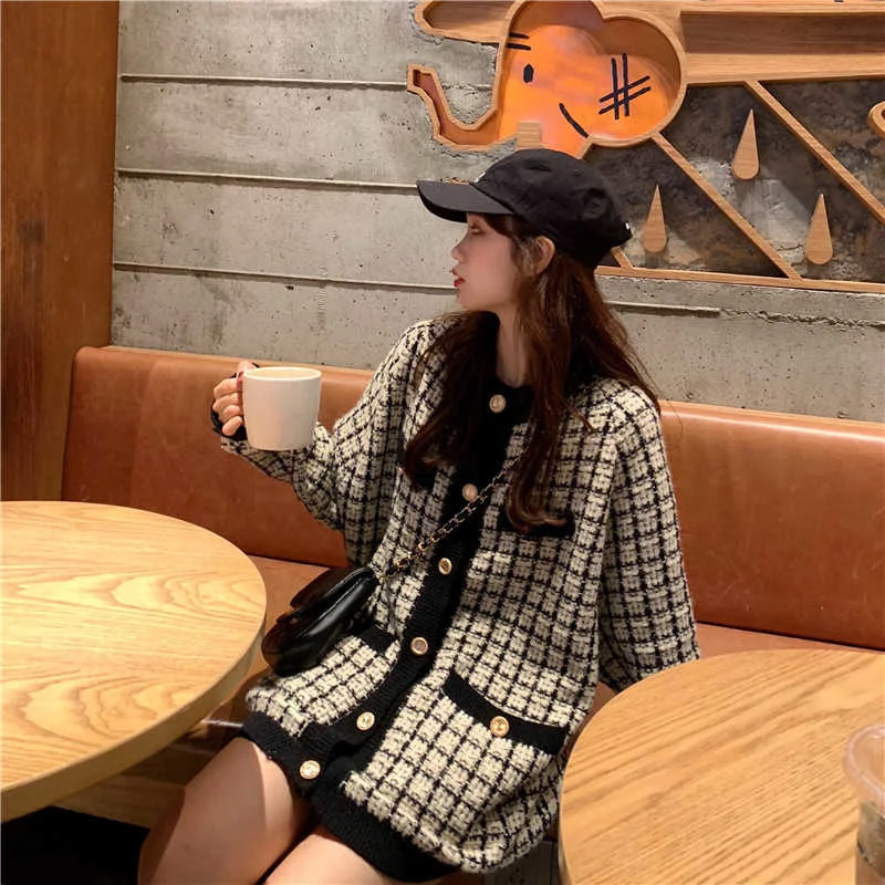 Autumn 2021 New Sweater Coat Retro Shirt Check Long Sleeve Single Breasted Plaid Loose Knit Cardigan Tide Ladies