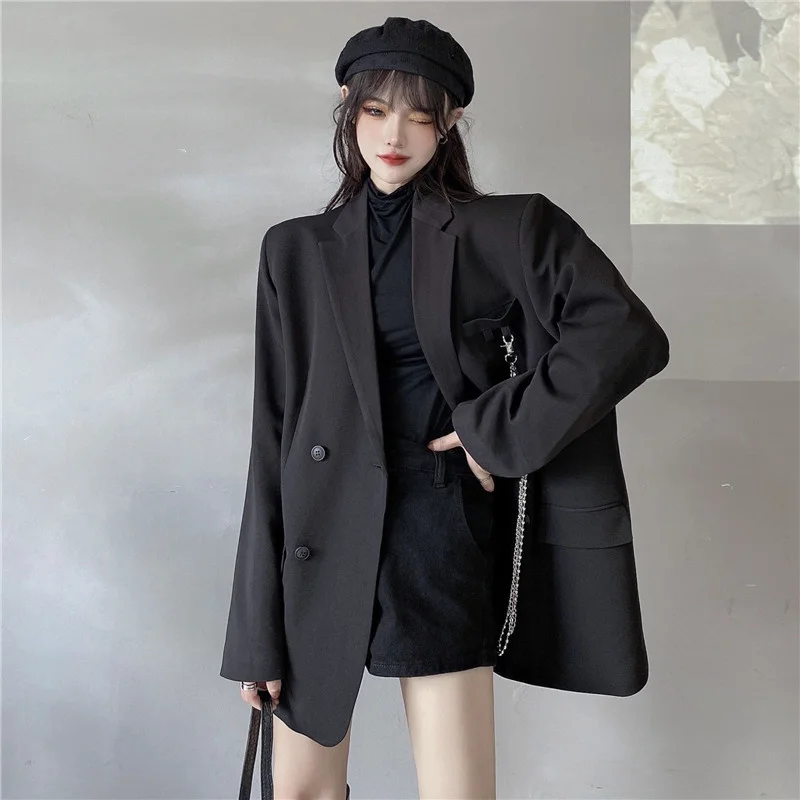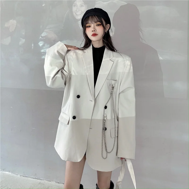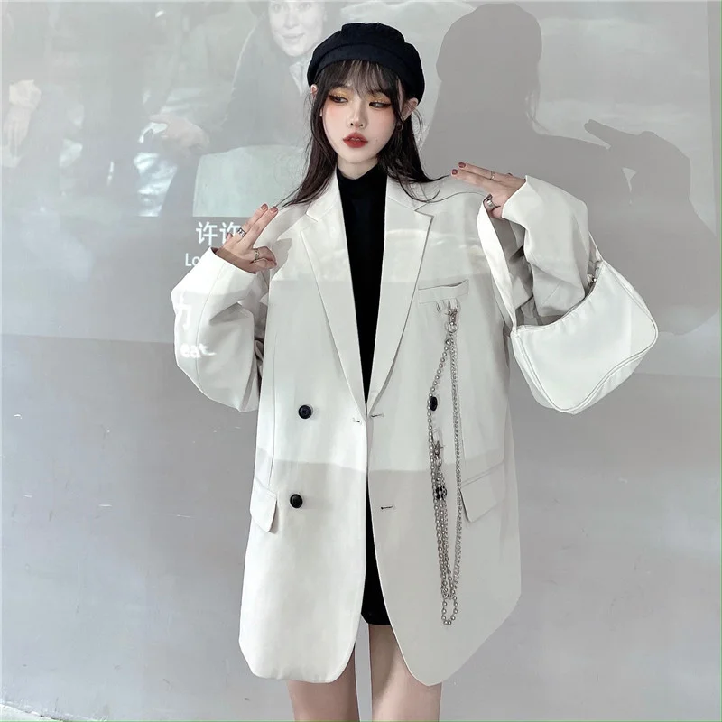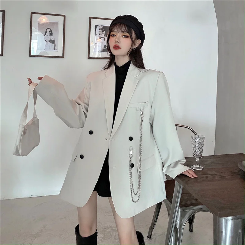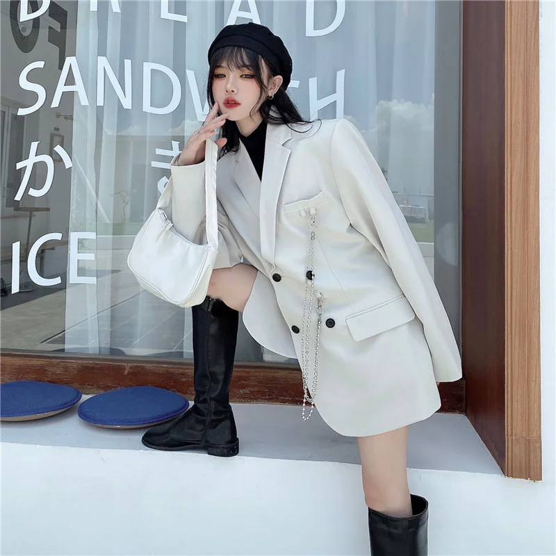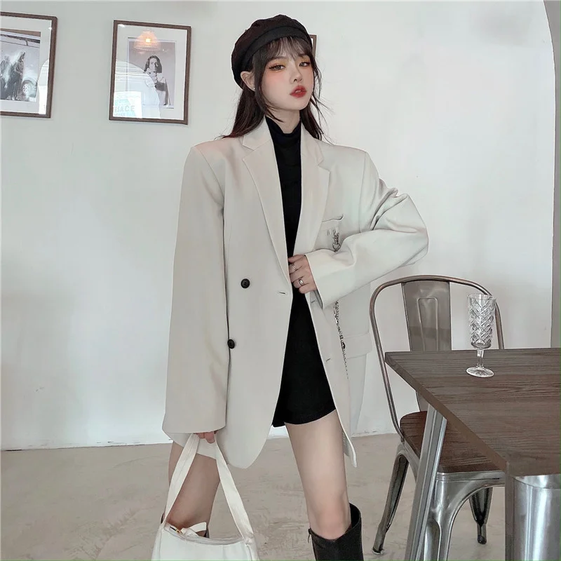 Autumn New Beige Profile Small Suit Female Padded Shoulder Wide Version Temperament Long Coat Blazer Feminino Fashion Office