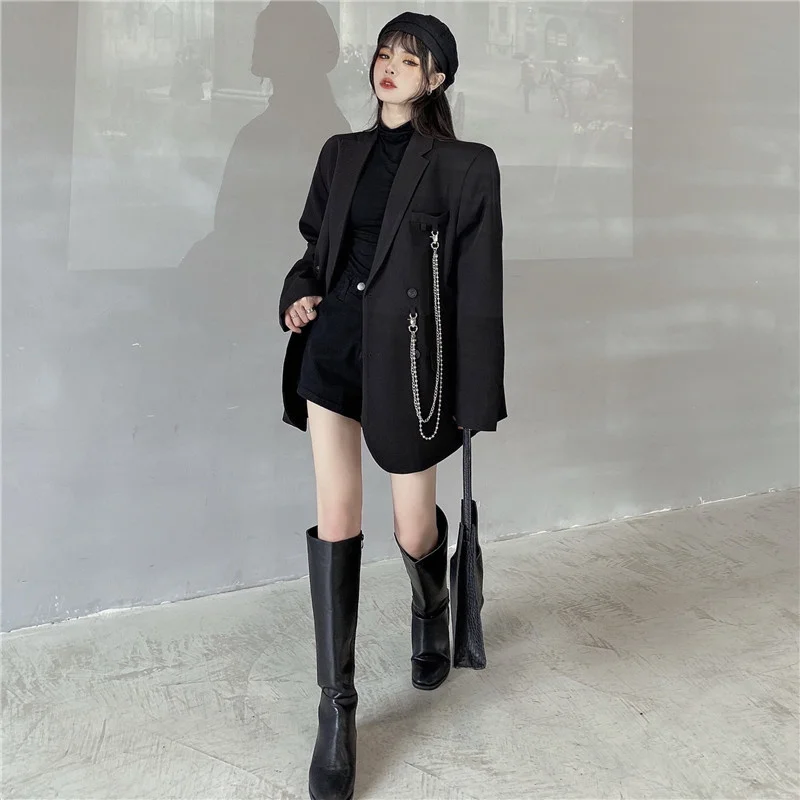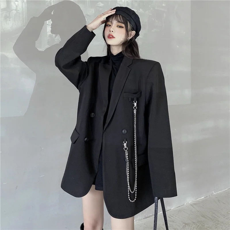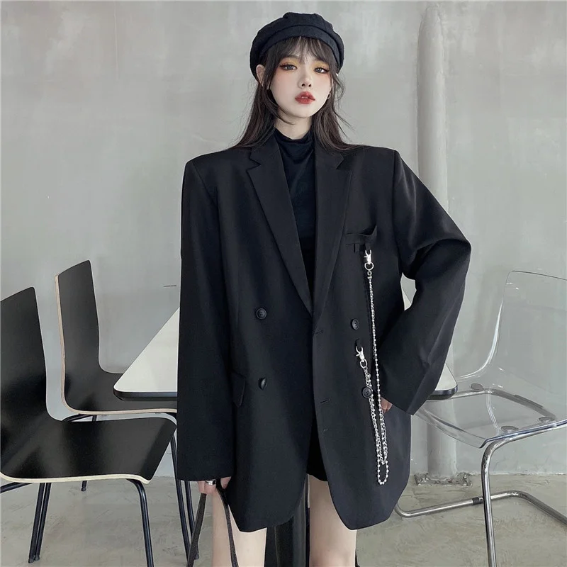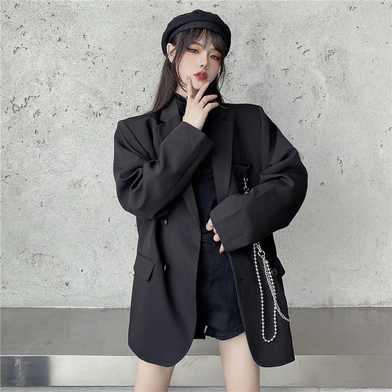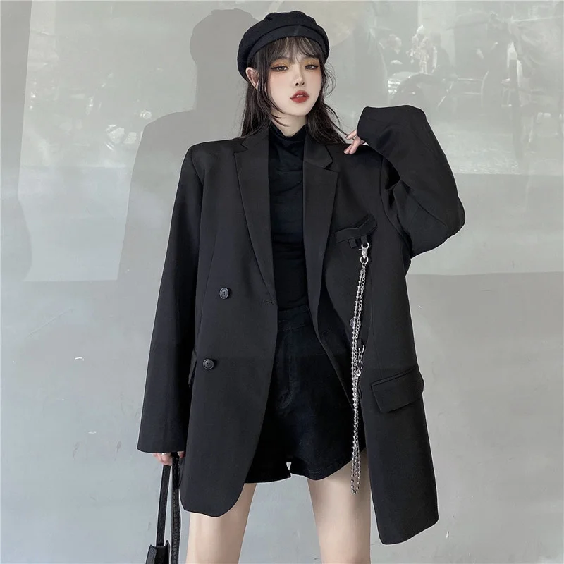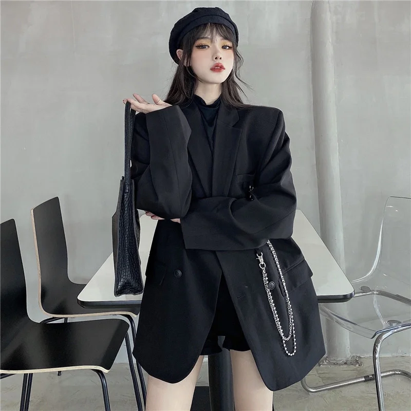 Autumn New Beige Profile Small Suit Female Padded Shoulder Wide Version Temperament Long Coat Blazer Feminino Fashion Office