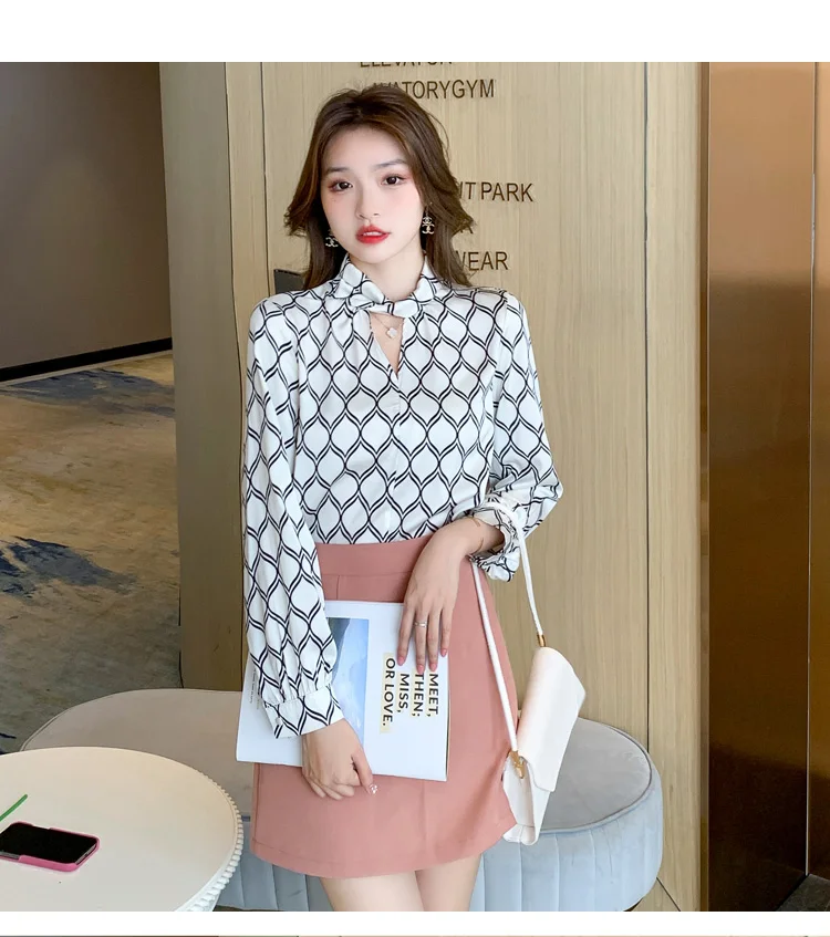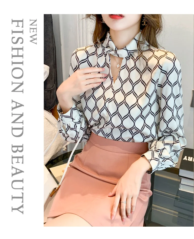 Autumn New Women Blouse Shirt Fashion CasualSilk Plaid Long-sleeved Satin Top High-End Elegant Slim Office Lady Clothing