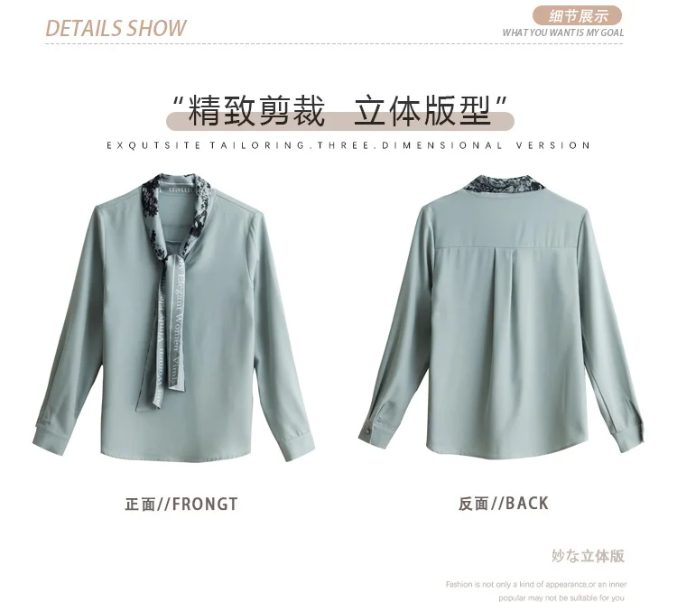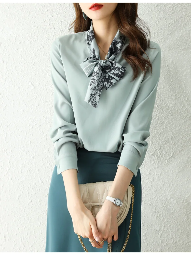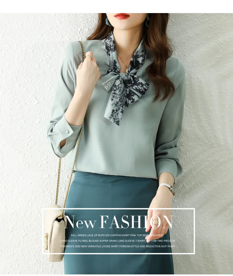 Autumn New Women Chiffon Blouse Fashion Temperament High-End Long Sleeved Office Ladys Shirt Elegant Slim Women Clothing Tops