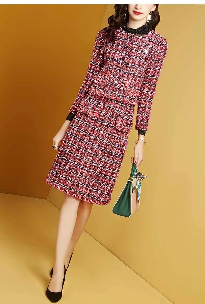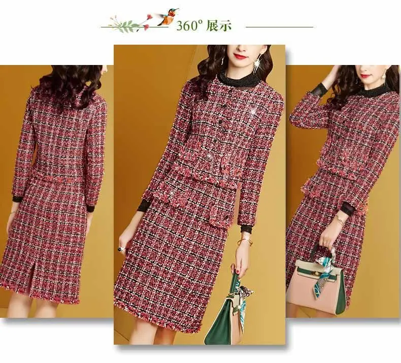 Autumn Suit Women's New Small Fragrant Wind Woolen Plaid Dress Skirt Autumn and Winter Two-piece Fashion