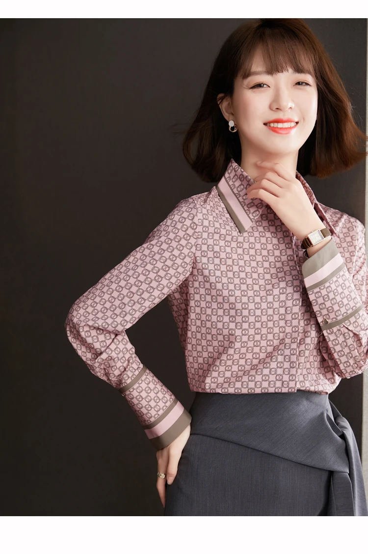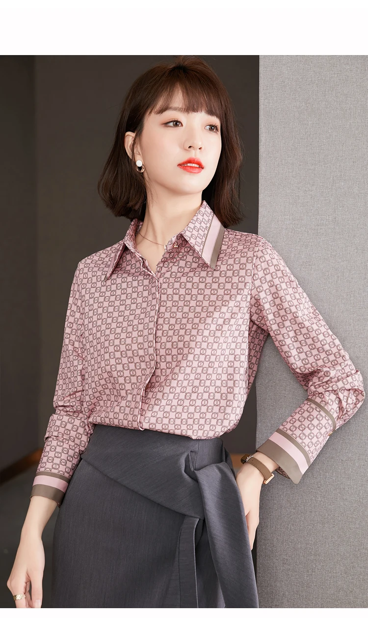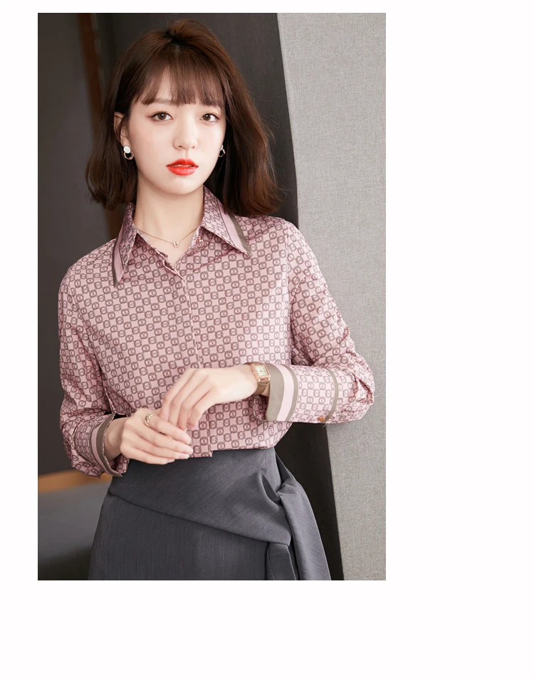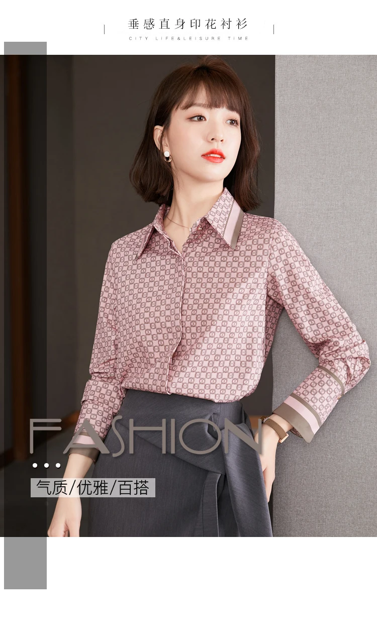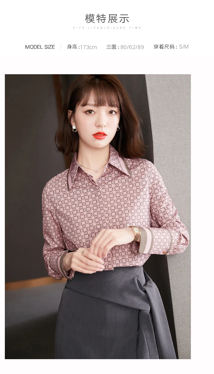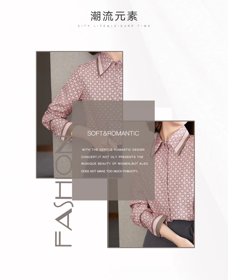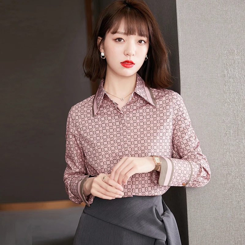 Autumn Women's Blouse New Top Long Sleeve Polo Shirt High-end Fashion Casual Loose Girl Printing Satin