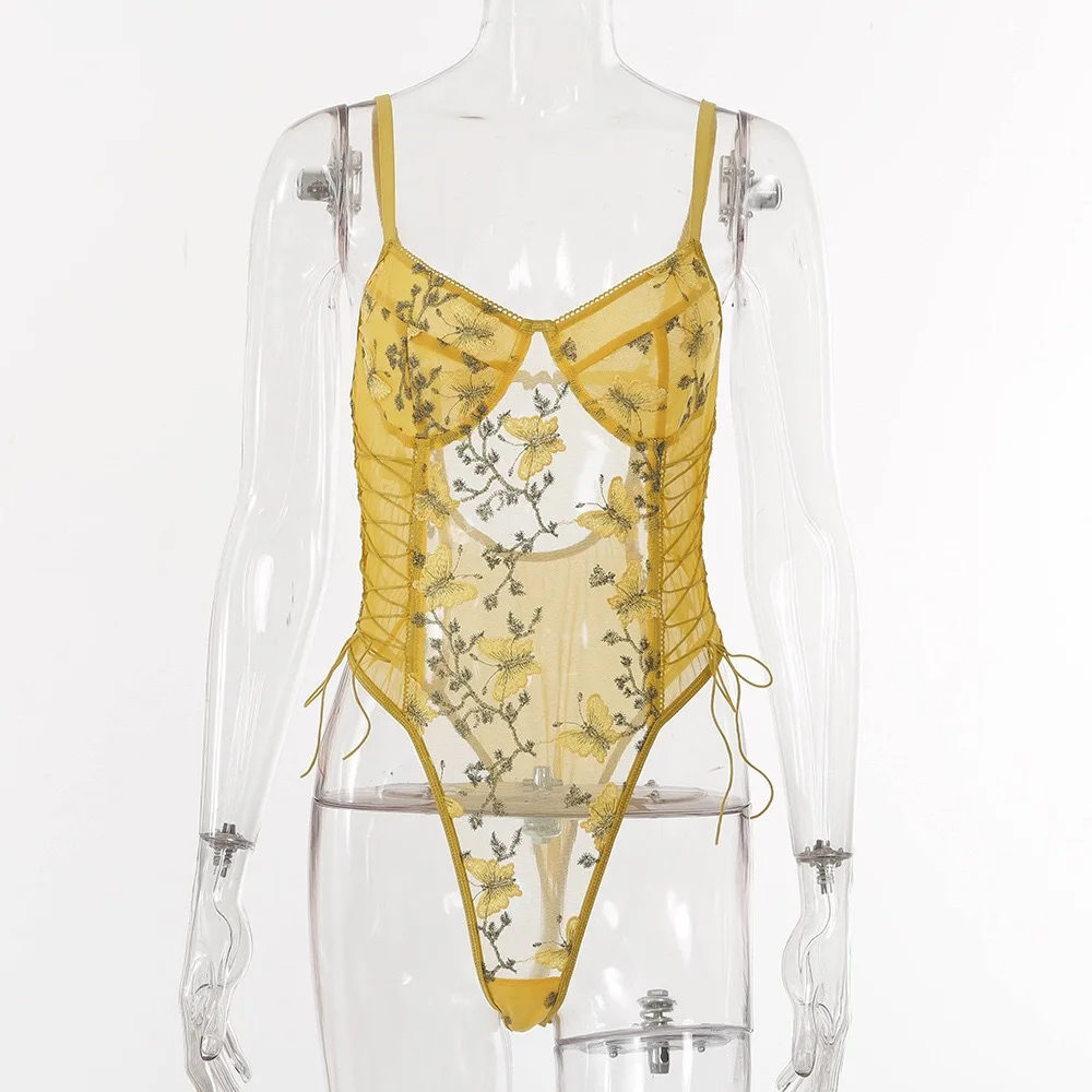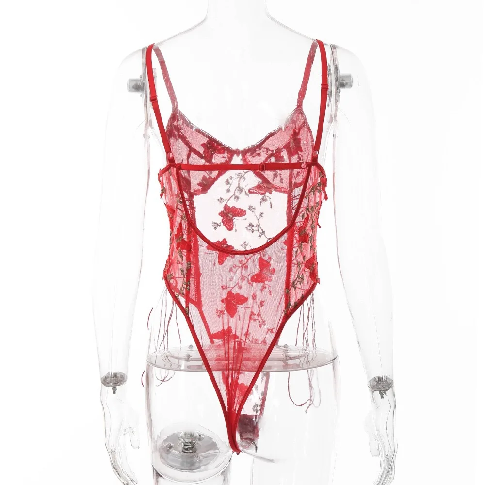 Butterfly Lace Plus Sizelingerie Bodysuit Lace Up Bandage Sexy Bodysuit Ladies Mesh Sex Bodysuit Top Body Femme Embroidery Strap