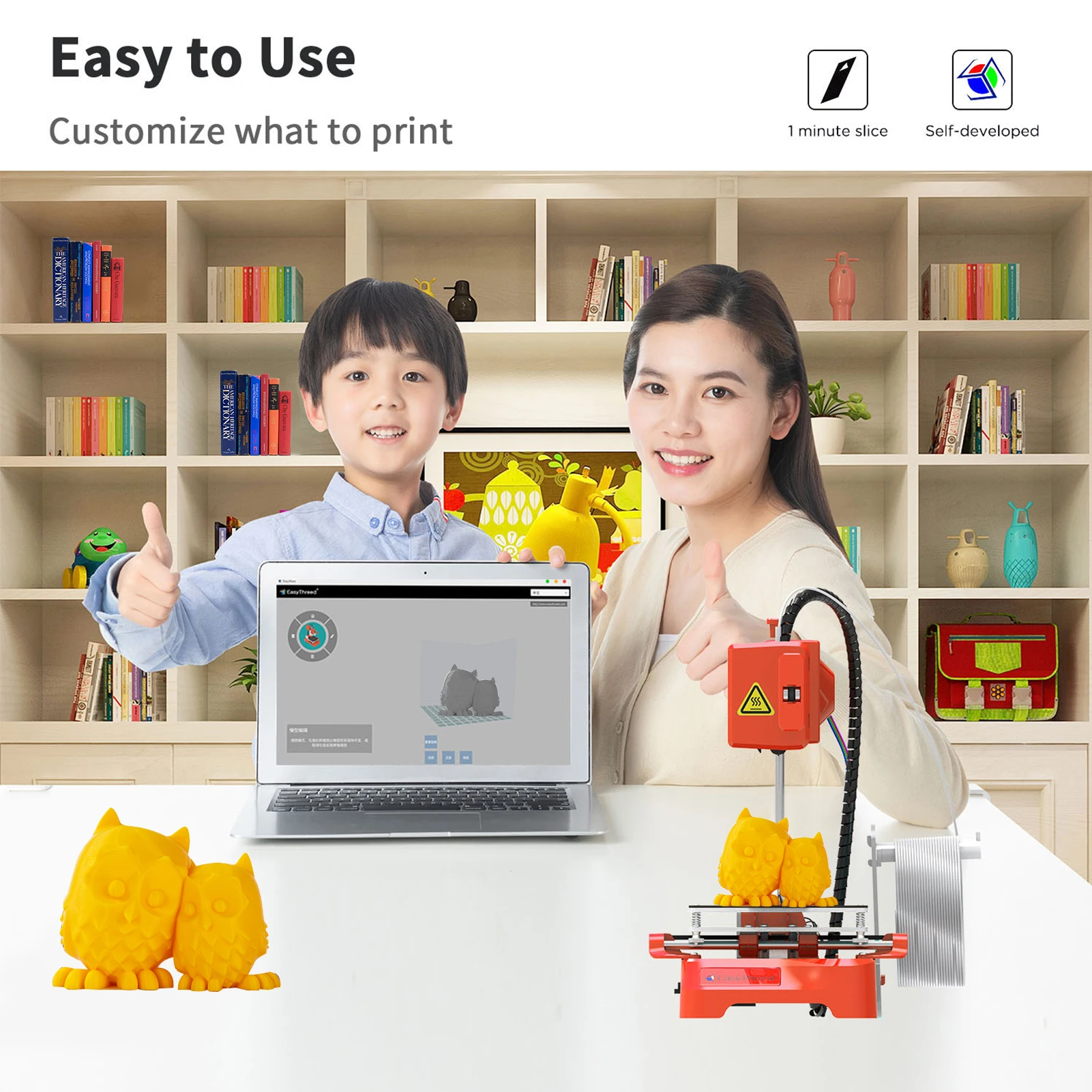 EasyThreed K7 3D printer, 100x100x100mm print size, ideal for household education and DIY amateurs. One-key printing, easy to operate.