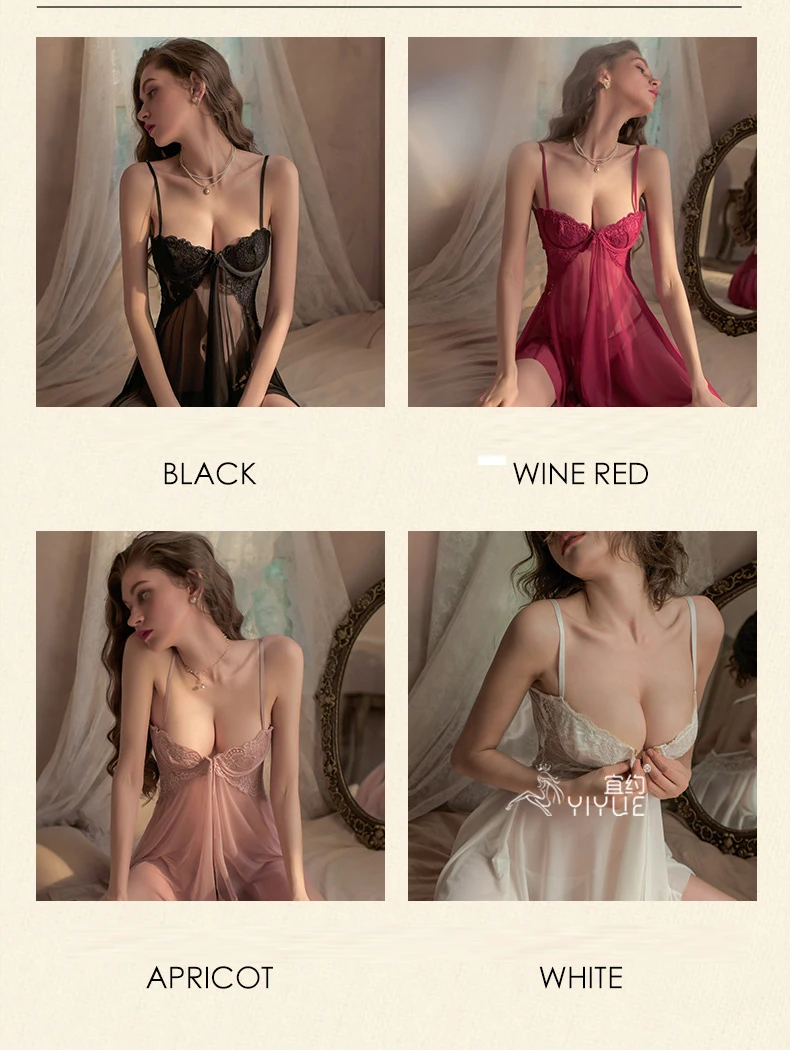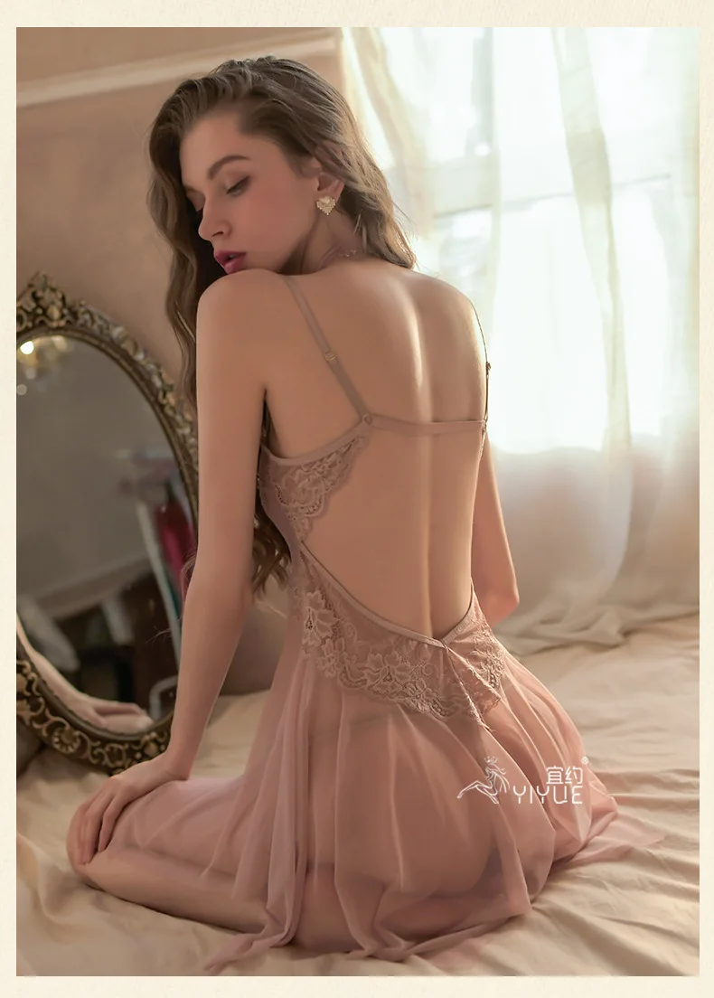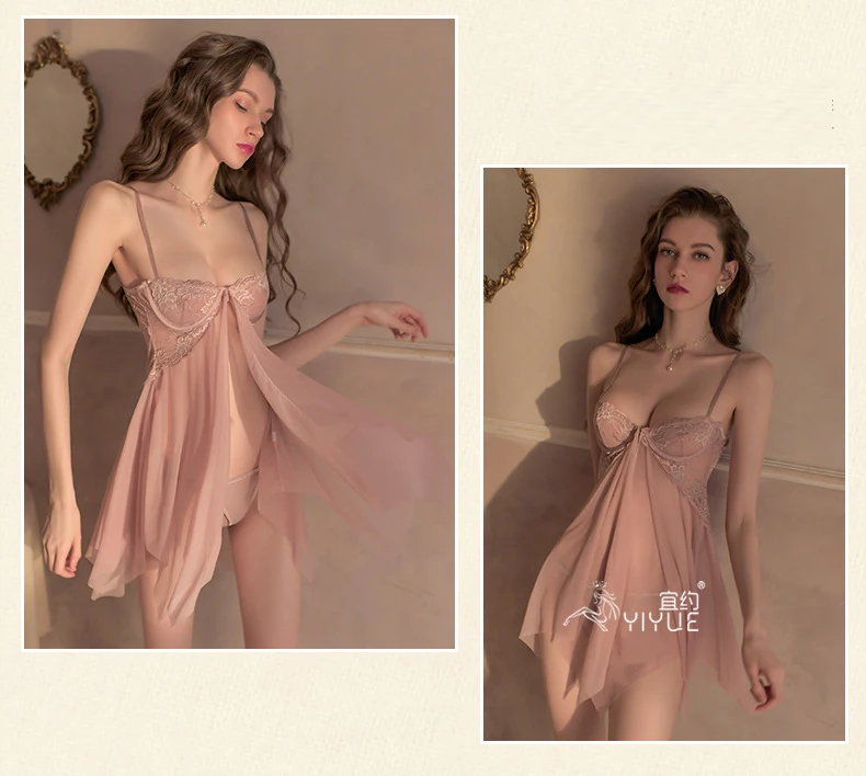 Erotic Lingerie Sexy Lace Temptation Pajamas Front Opening Hot See-through Uniform Sheer Dress Vestido Sexy Clubwear Dresses