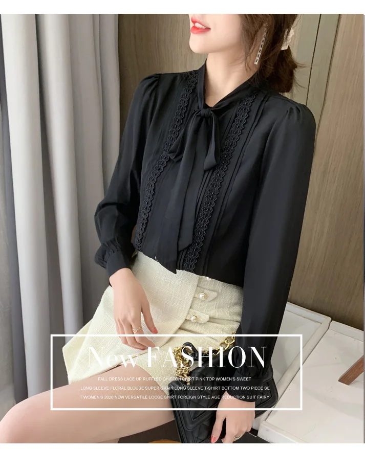 High-End Autumn Bow Tie Women Chiffon Shirt Fashion Casual Long Sleeves Office Lady Loose Blouses Elegant Slim Clothing