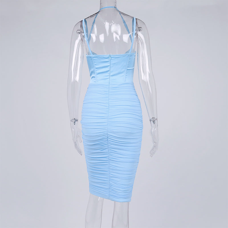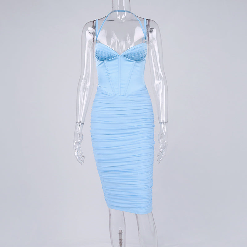 Satin Sexy Bodycon Dress for Women Elegant Midi Halter Patchwork Cut out Dress 2022 Summer Sleeveless Women Dress robe femme