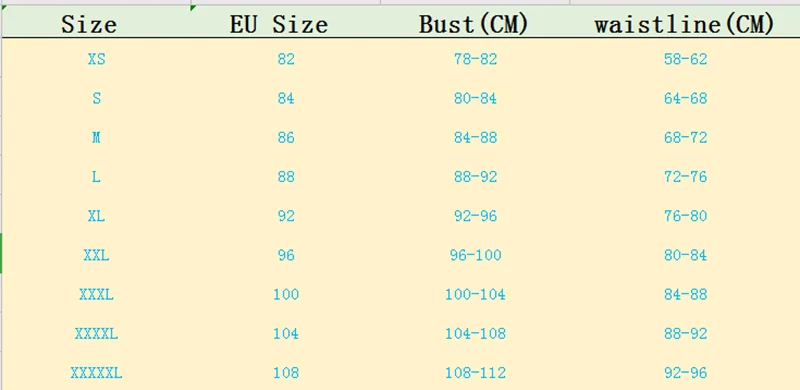 Size comparison table The size of this table corresponds to the suitable body size