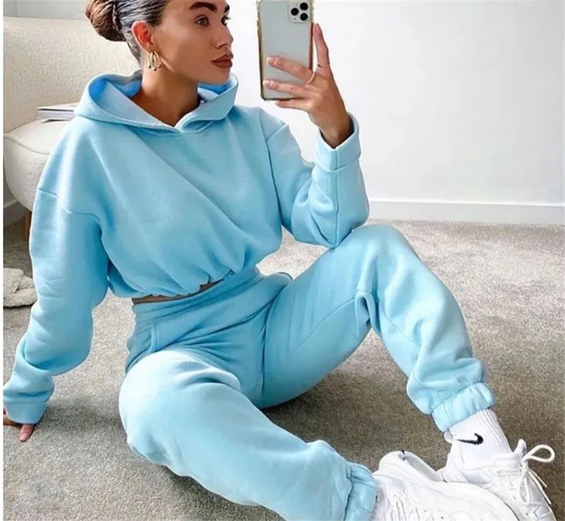 Solid Tracksuit Women Two Piece Set Autumn Clothing Hooded Drawstring Sweatshirt Top Long Pants Suit Casual Women's Sets Outfits