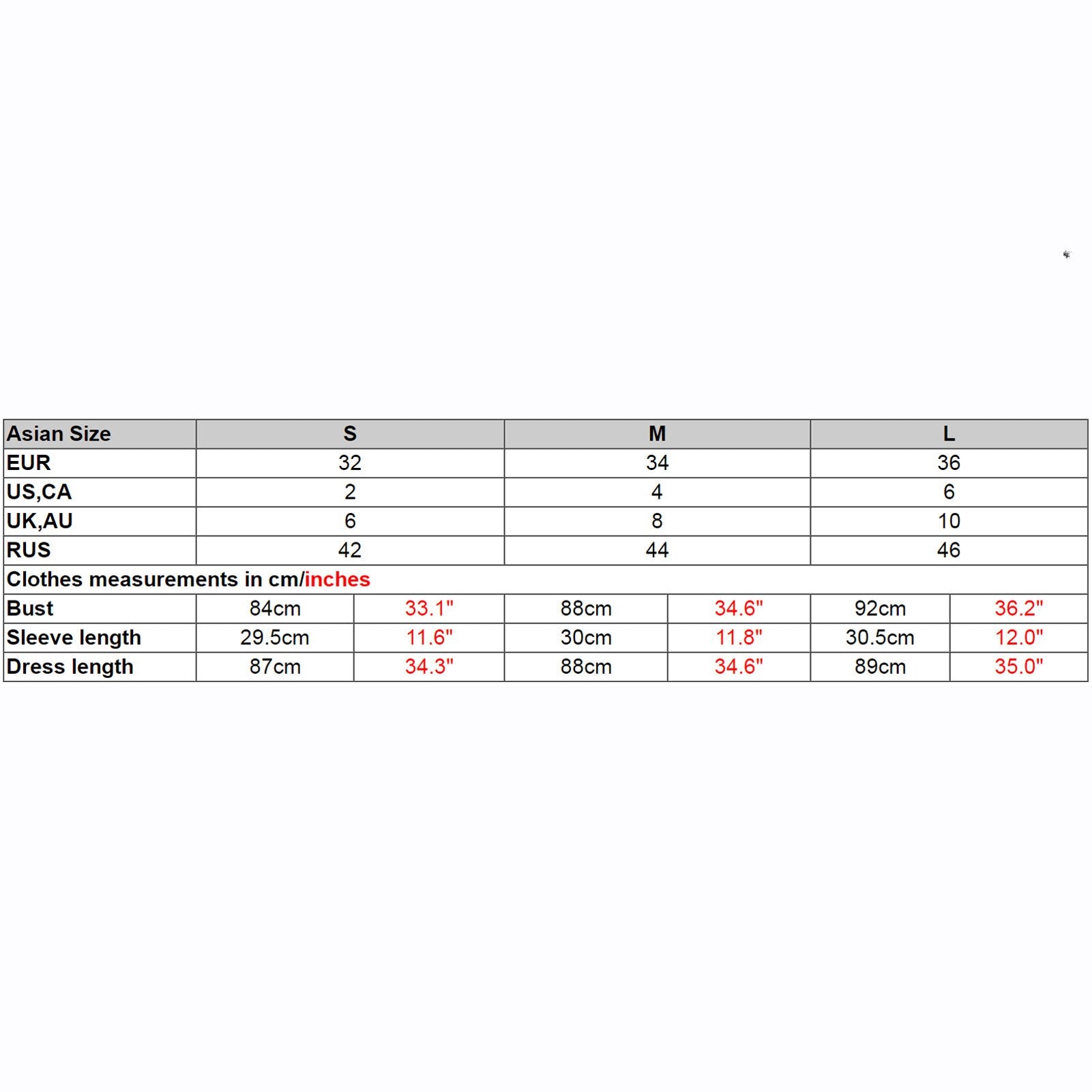 | Dress length | 87cm | 34.3" | 88cm | 34.6" | 89cm | 35.0" |