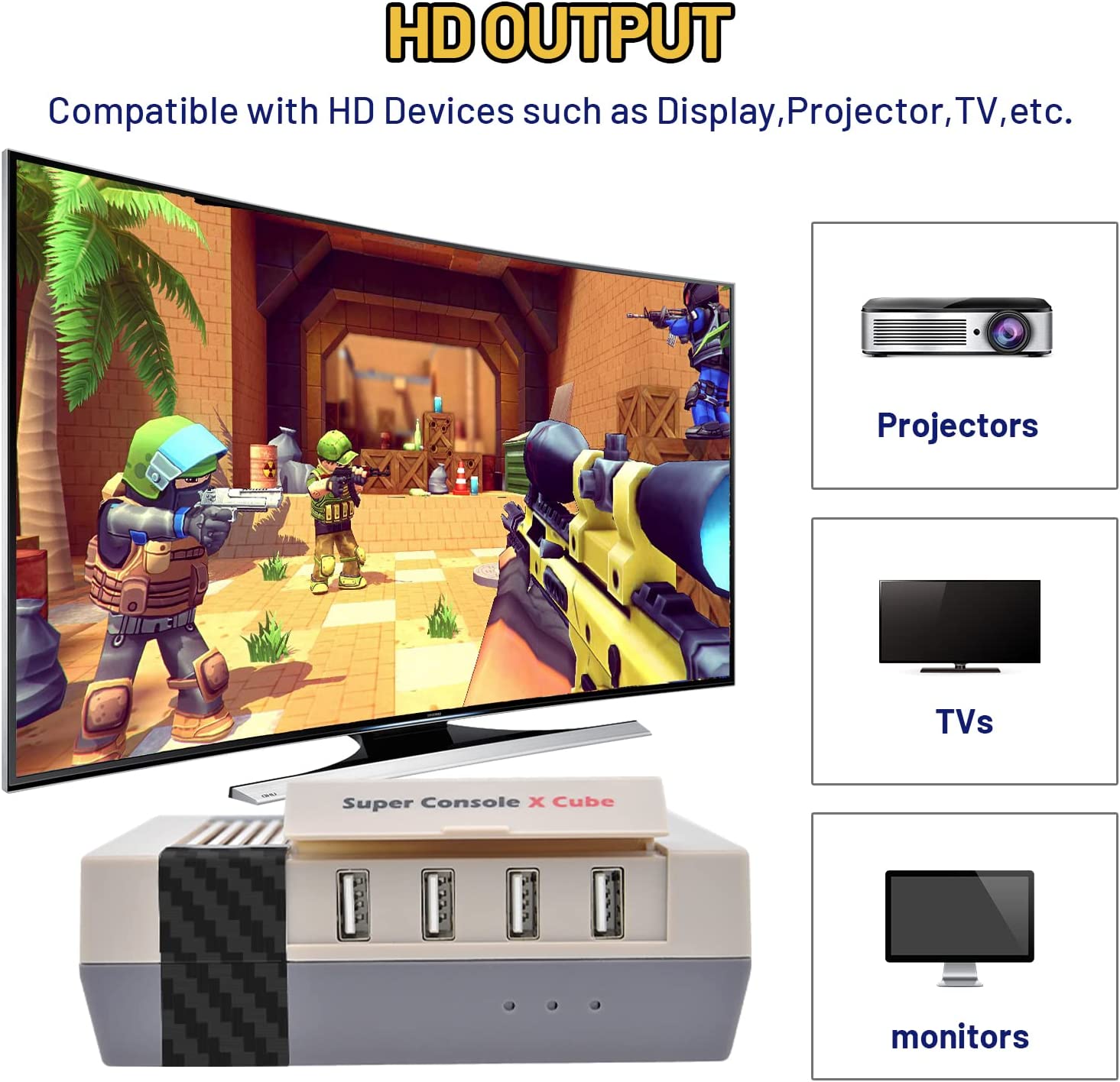 The super console x cube is compatible with a variety of display devices. You can connect it to a TV, projector or computer screen to play games on a variety of devices.