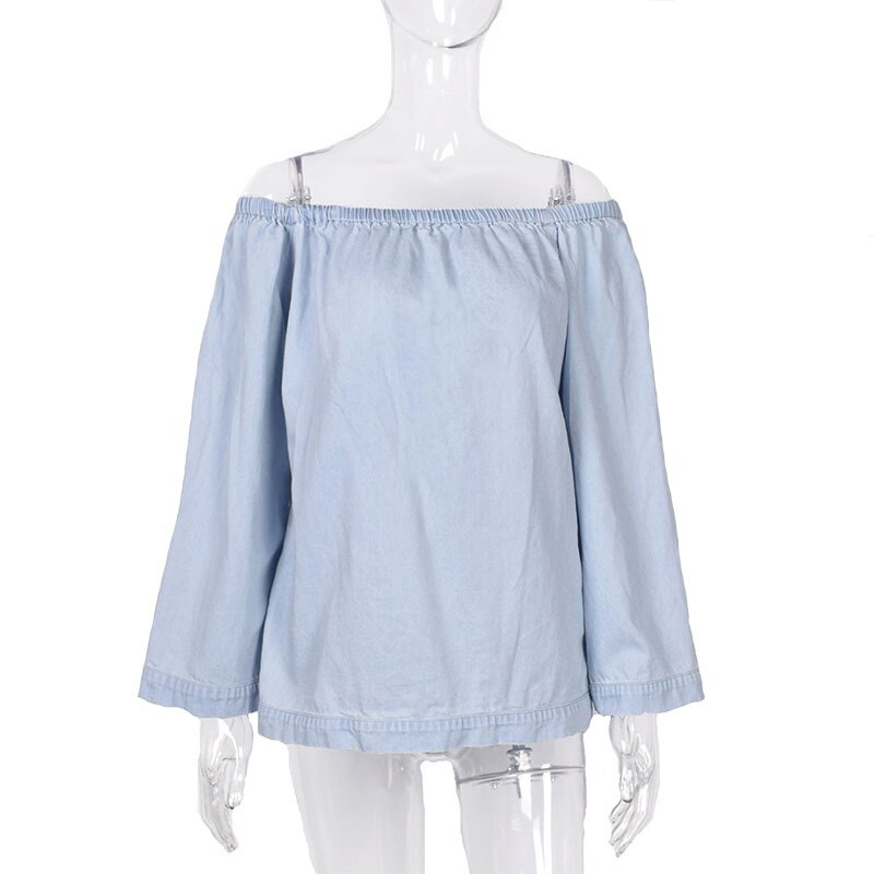 Women's 2021 summer one-line collar off-shoulder long-sleeved denim shirt